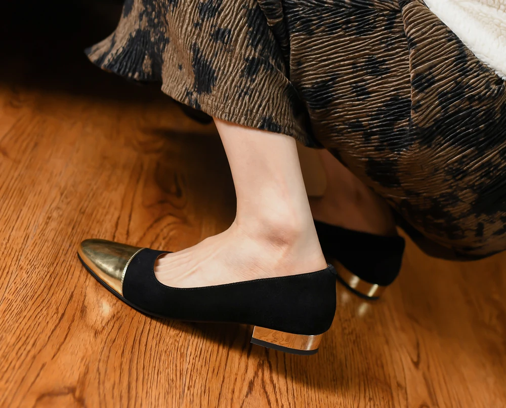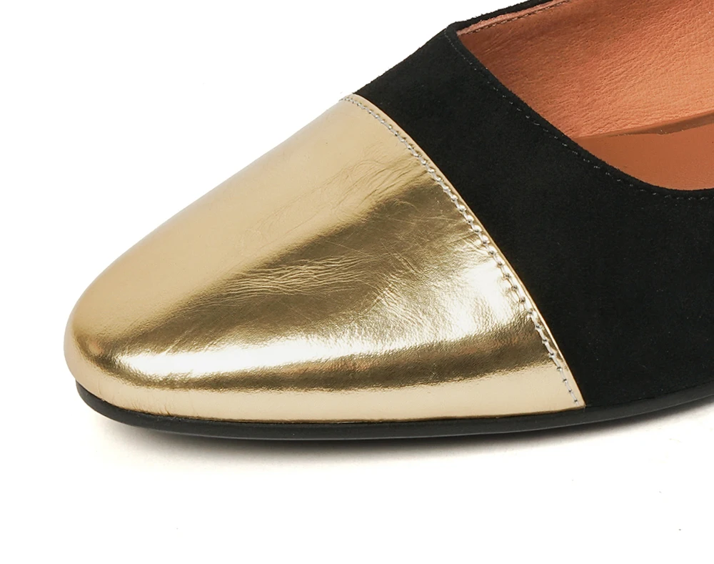 ▶Туфли на плоской подошве изготовлены из металлической воловьей кожи и натуральной замши.