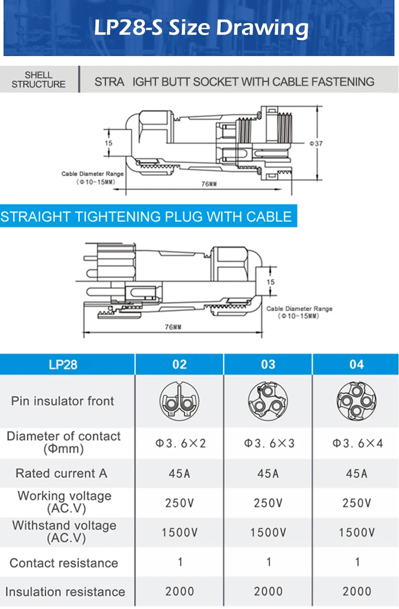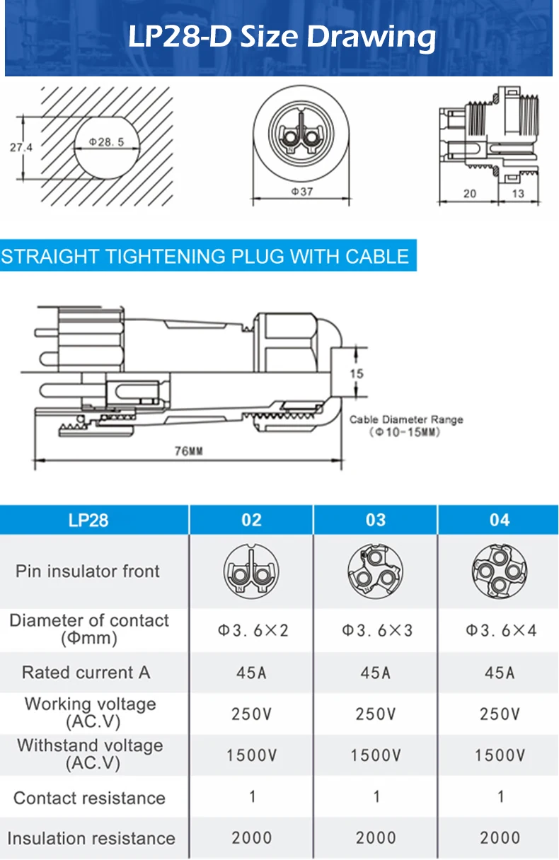 LP/SP28 IP68 Водонепроницаемый соединитель штекер и гнездо Кабельный разъем без сварки винтовое соединение стыковка/гайка/квадрат