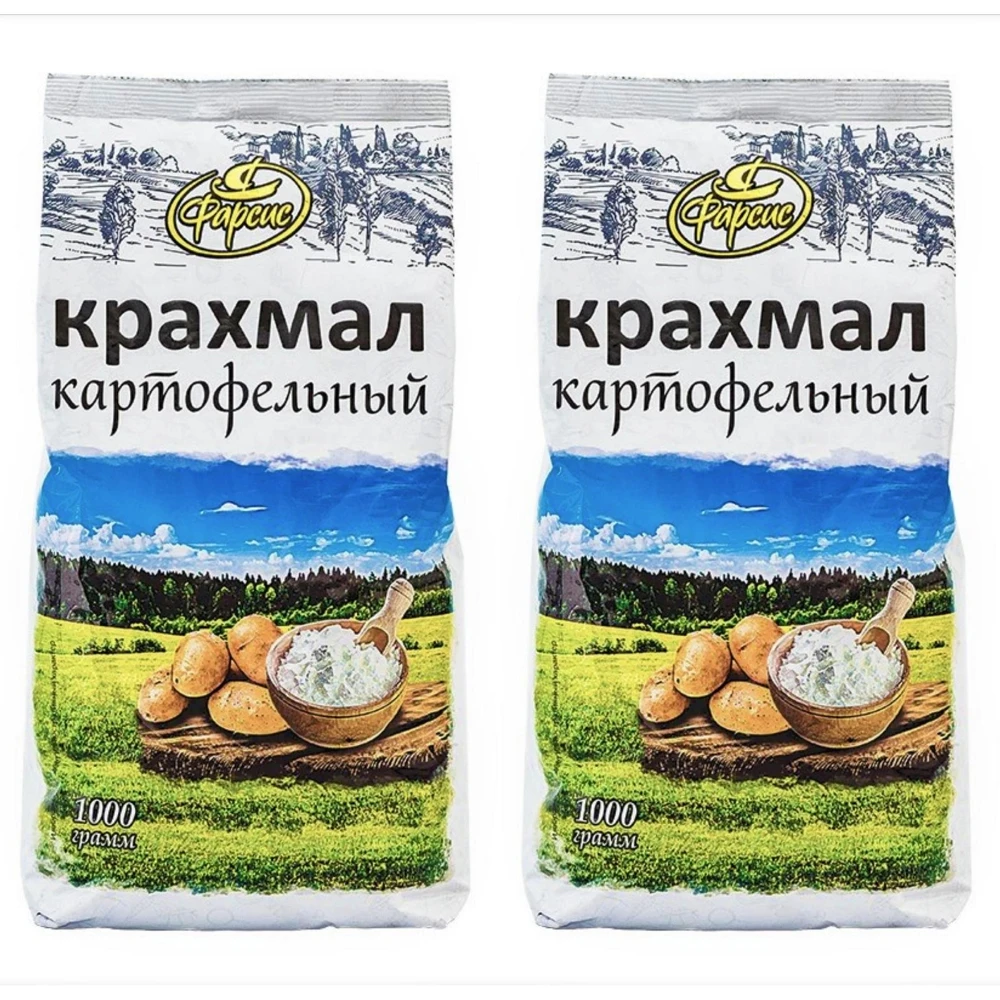 Показать ещеСмотреть 1 отзывОписание Фарсис крахмал картофельный натуральный, ГОСТ Р 53876-2010 высший сорт, 1000 г (2шт.)Пищевая добавка «Картофельный крахмал» — незаменимый ингредиент на кухне каждой хозяйки. Натуральный картофельный крахмал подходит для выпечки, пудингов, киселей и соусов. В основном крахмал используют для загустения блюд и придания им формы. Пищевая добавка в виде порошка не имеет вкуса и запаха. Продукт изготовлен из натурального картофеля высшего сорта. Калий, кальций и фосфор в составе нормализуют обмен веществ и выводят лишнюю воду из организма. Пачки объемом 400 г хватит на длительное время. Фарсис – это российская компания, производящая бакалейную продукцию, специи и приправы более 20 лет. Попробуйте радугу вкуса и аромата!