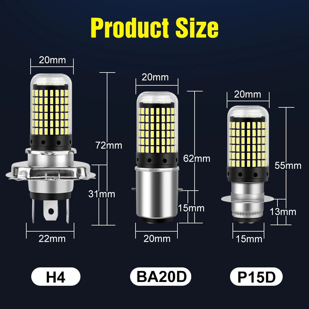 1 шт. фара для мотоцикла светодиодный BA20D P15D H6 H4 лампы Hi Lo луч Мото Светодиодный фара для мотоцикла 144 шт. чипы Автомобильные фары