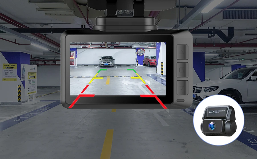 Если вы установили нашу заднюю камеру, видеорегистратор автоматически переключается для отображения изображения заднего объектива, а полный экран отображает заднюю среду, поддерживающую Реверсивный режим.