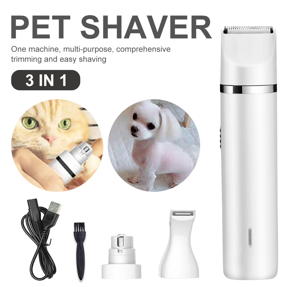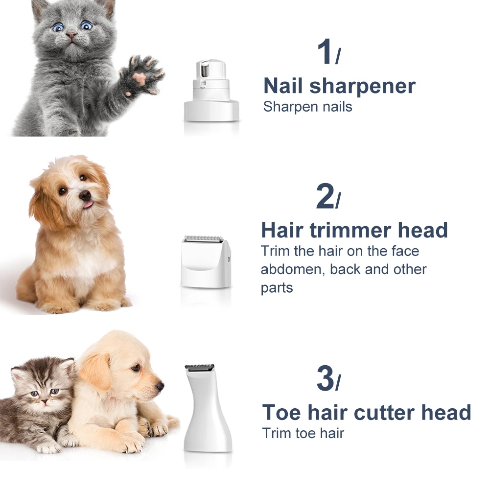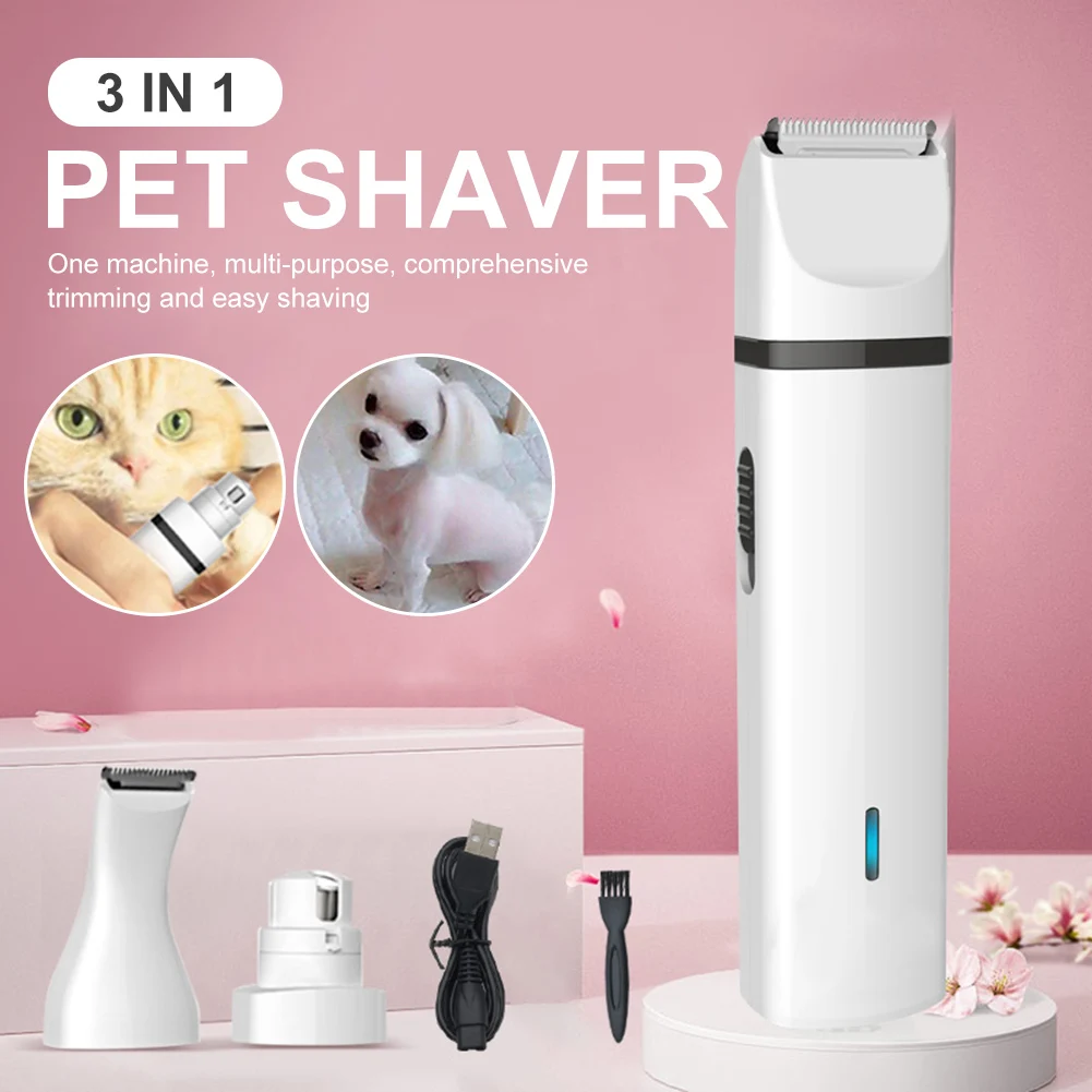 3 In 1 Pet Grooming Kit USB Rechargeable Pet Clipper Hair Trimmer Paw Nail Grinder Foot Cutter Machine For Cats Dogs