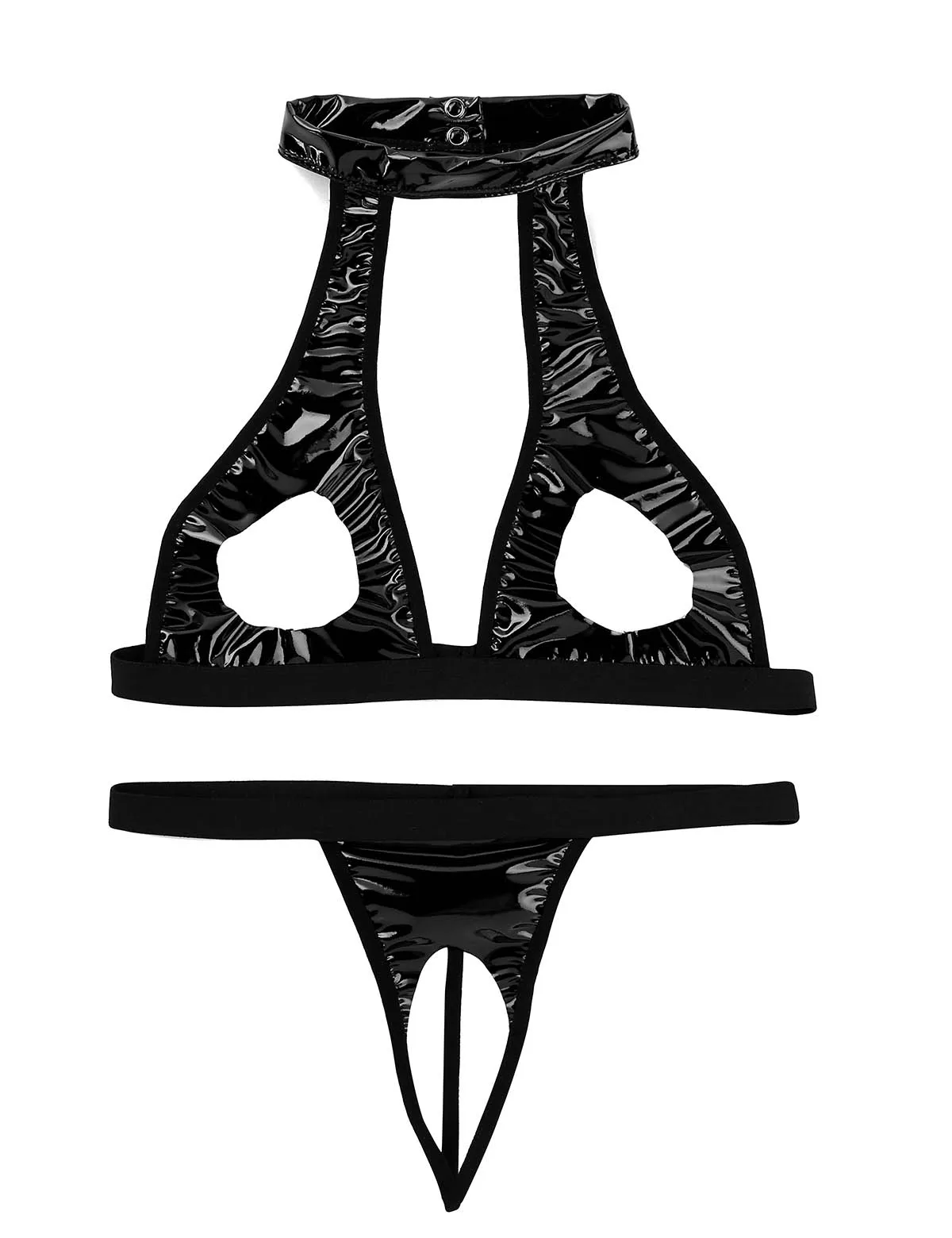 Комплект женского нижнего белья из искусственной кожи wetlook из 2 предметов, удобная и эластичная ткань.