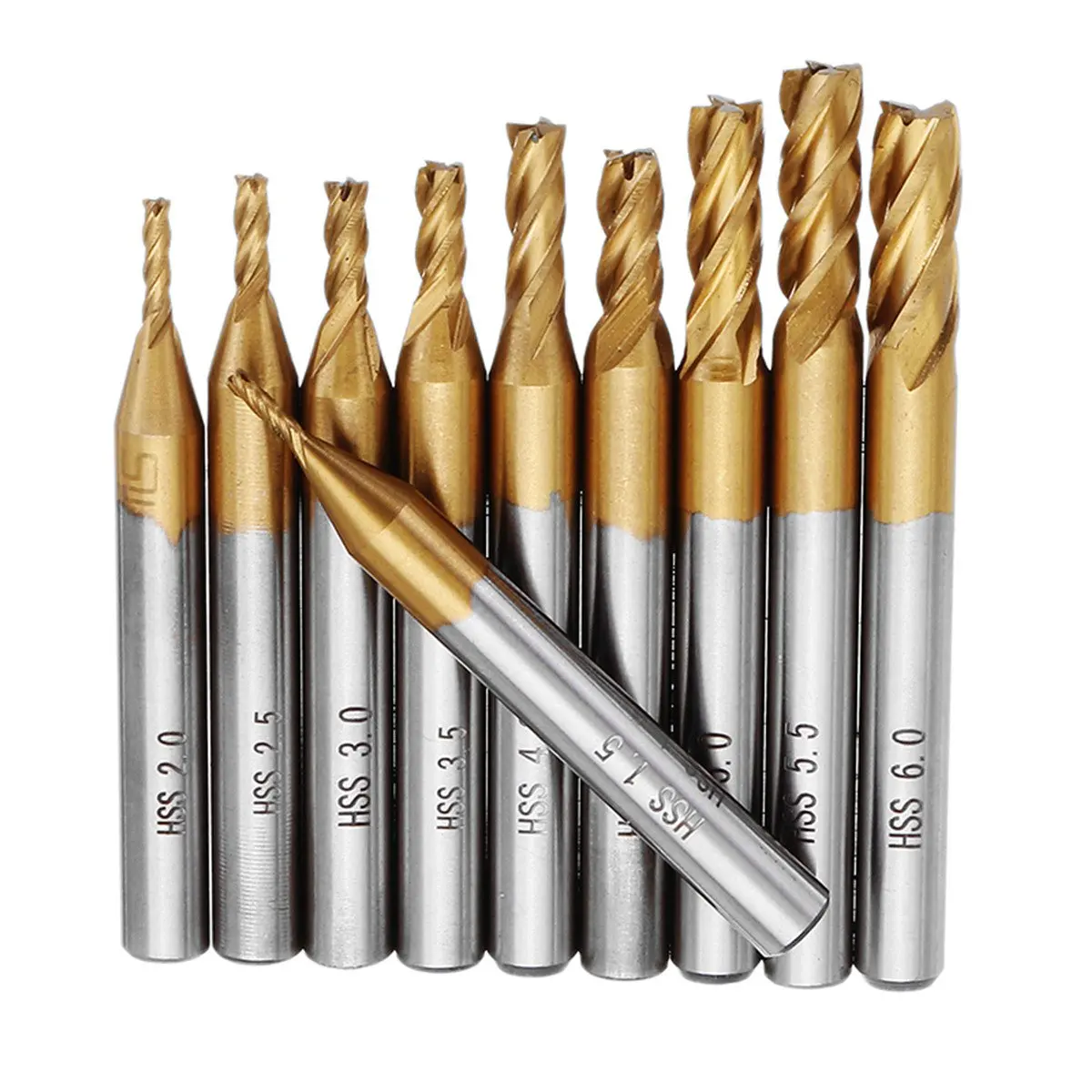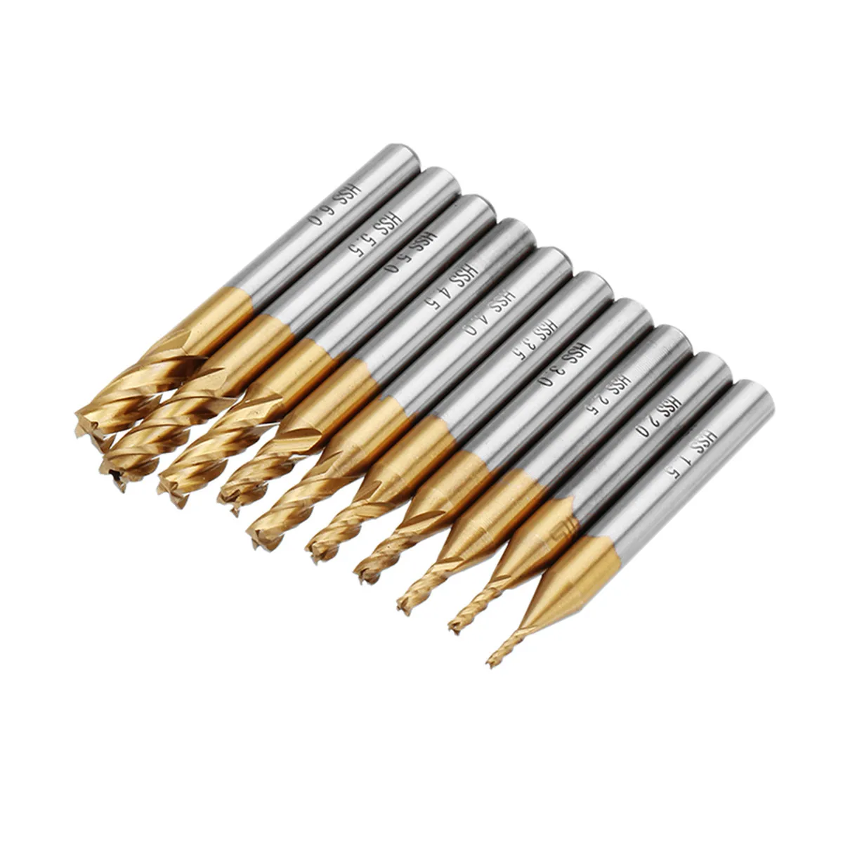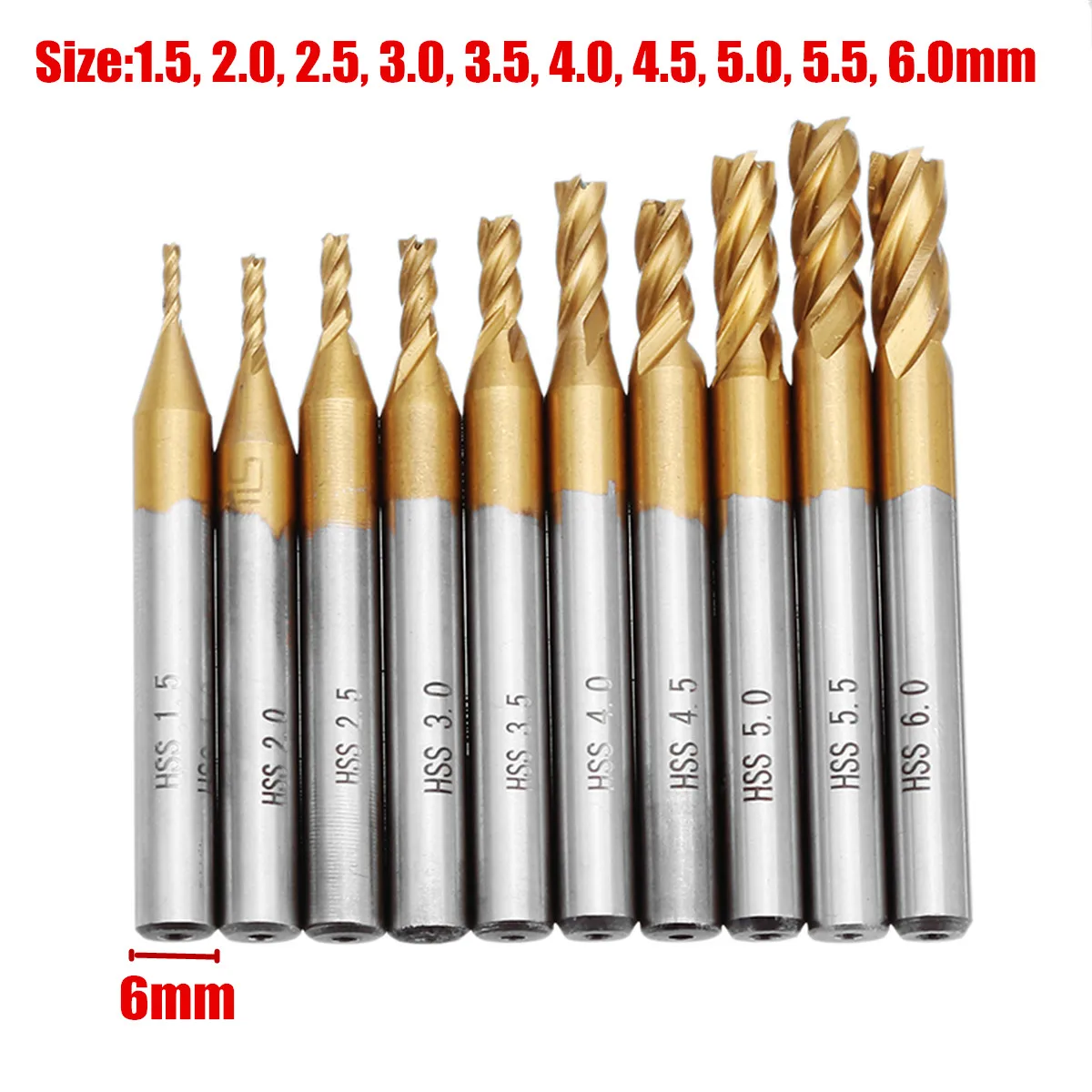 Drillpro 10 шт. титановое покрытие 1,5-6,0 мм HSS 4 Флейта концевая фреза 6 мм прямой хвостовик CNC сверла