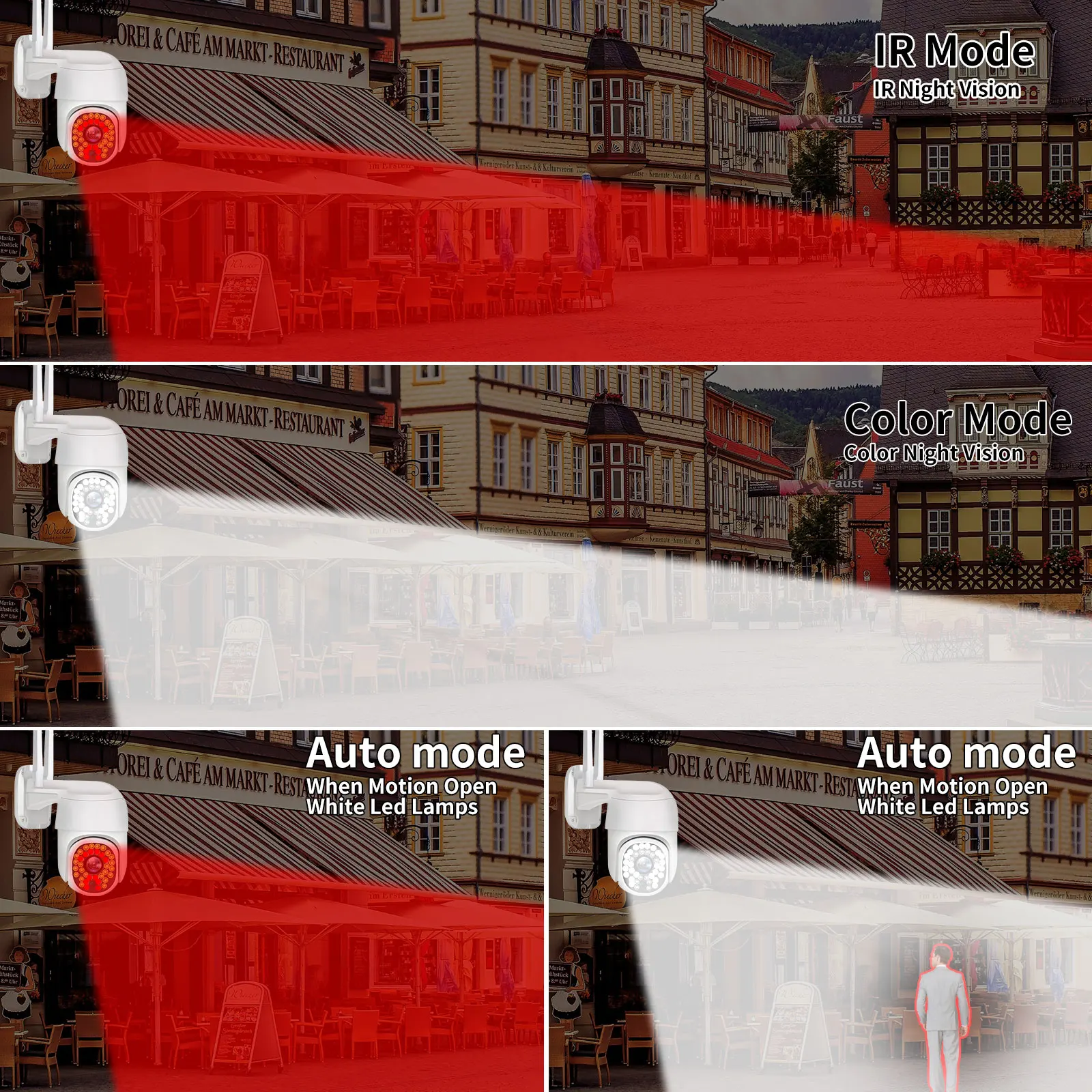 Вращается на 355 ° по горизонтали и 95 ° по вертикали. Вы можете управлять им в приложении EseeCloud напрямую, когда захотите и где бы вы ни находились.Когда кто-то двигается, камера wifi автоматически отслеживает тело.
