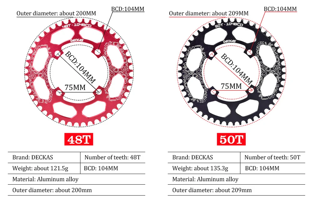 Зубы: 32/34/36/38/40/42/44/46/48/50/52T Круглый передняя Звездочка