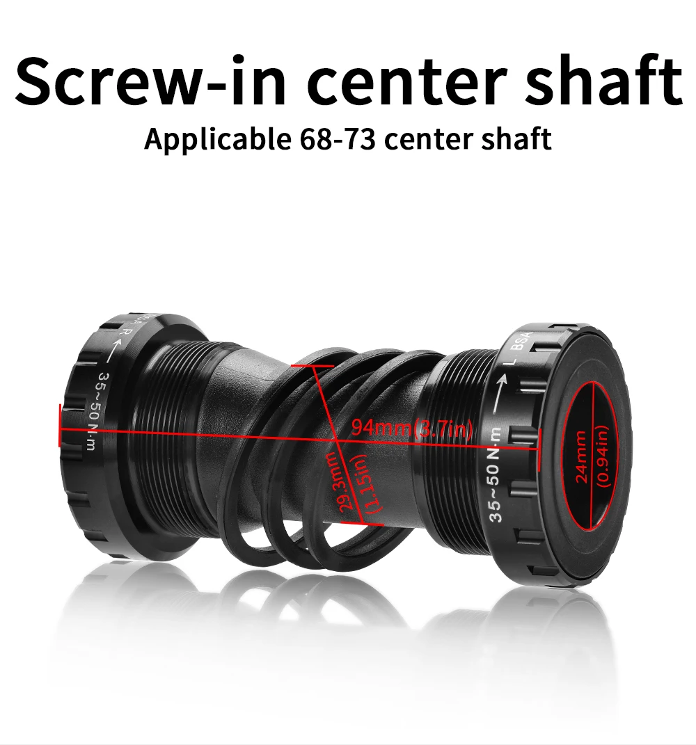 【Размер 】 BCD: 104 мм/4,09 дюйма Длина рукоятки кривошипа: 170 мм/6,69 дюйма, расстояние между отверстиями кривошипа: 74 мм/2,91дюйма. Ширина нижнего кронштейна: 68-73 мм/2,67-2,87 дюйма.
