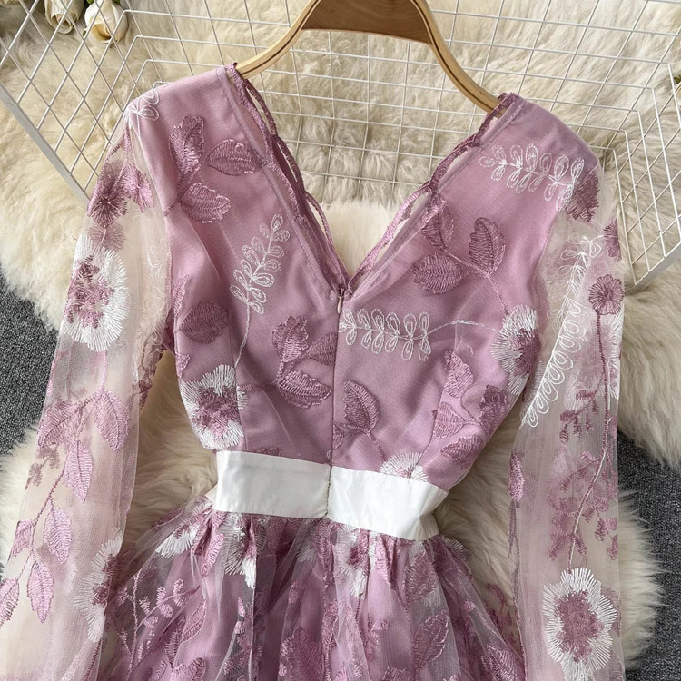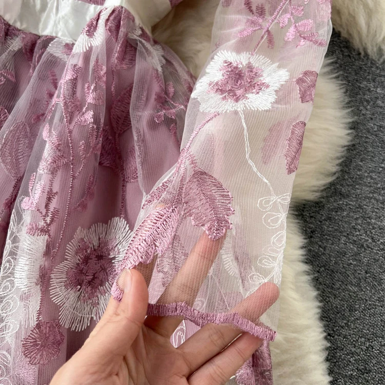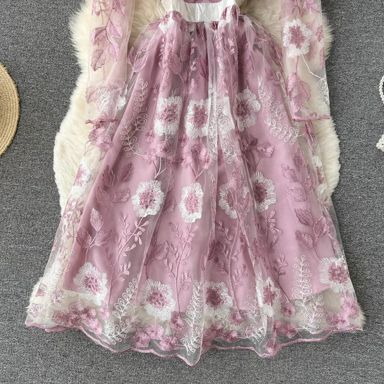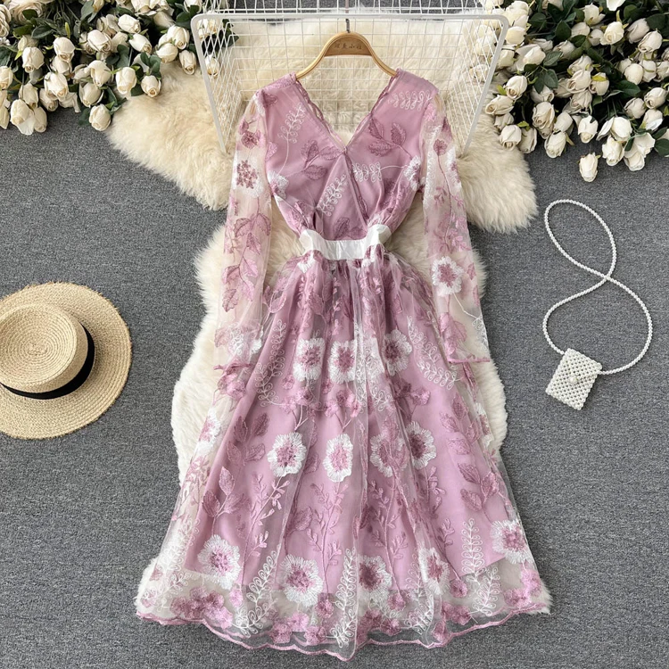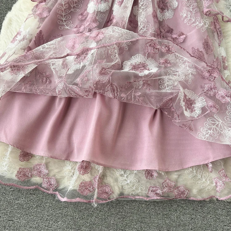 Подиумное роскошное розовое Сетчатое кружевное платье с вышивкой 2022, весенне-летние женские офисные вечерние платья миди с цветочной вышивкой