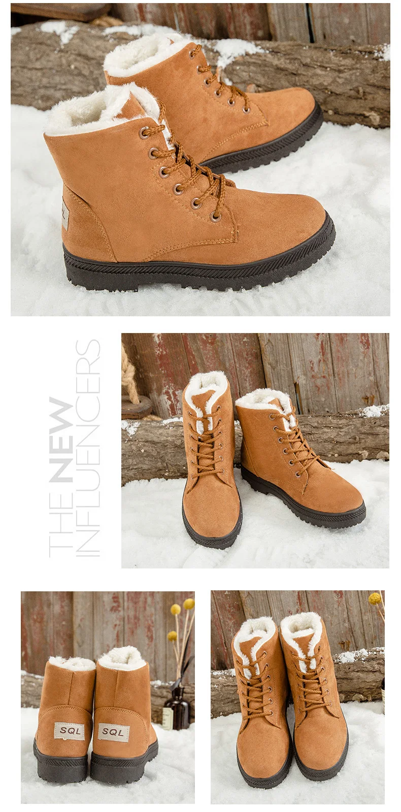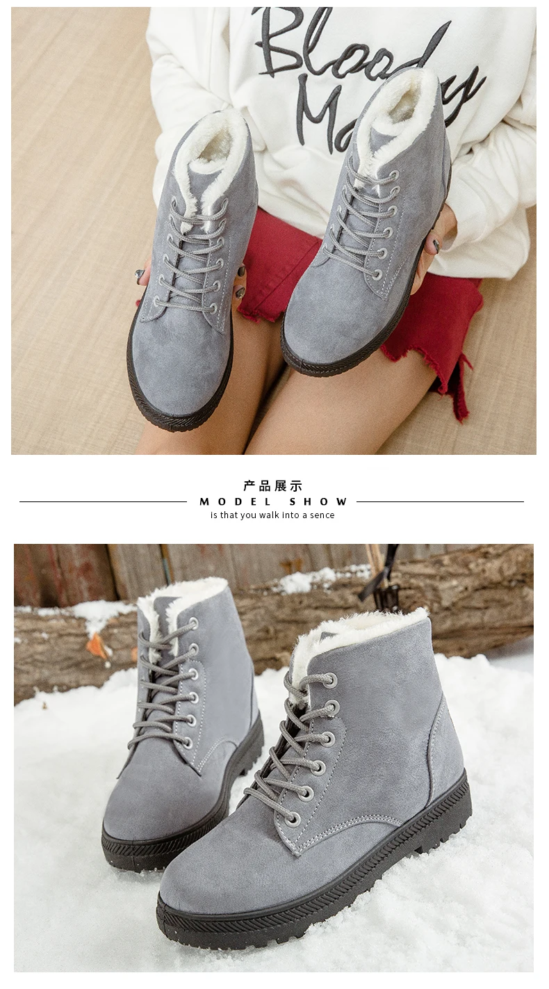 Новые зимние повседневные женские ботинки Удобная теплая обувь на шнуровке с подкладкой акция, высокое качество, нескользящая женская обувь, очень большой размер