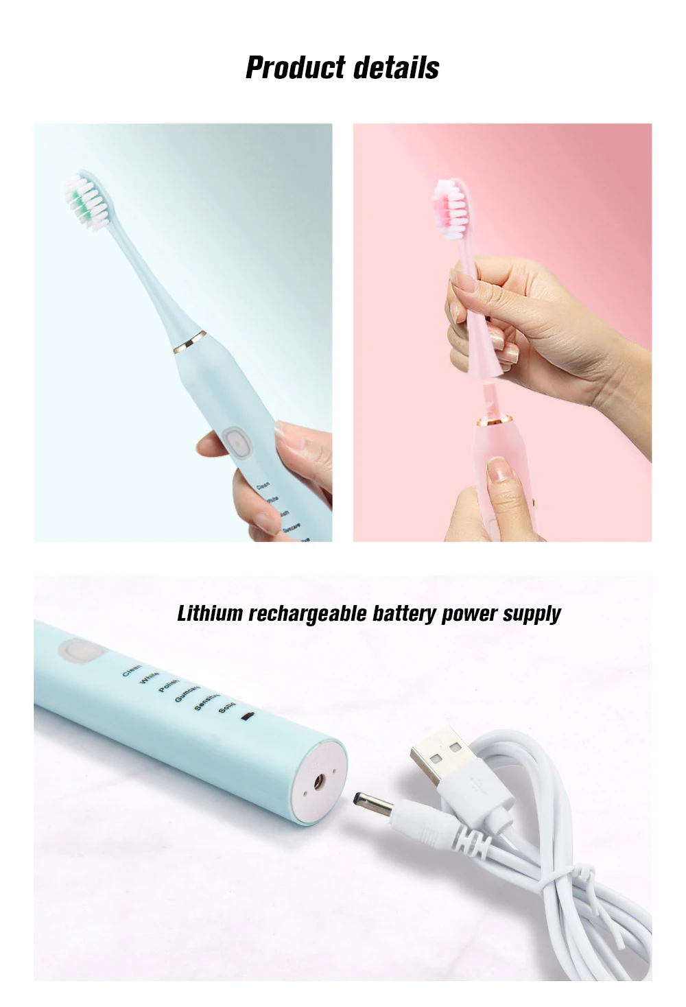 Звуковая электрическая зубная щетка Shock 6 режимов для взрослых бытовые мягкие волосы USB перезаряжаемые Детские зубные щетки и сменные головки набор