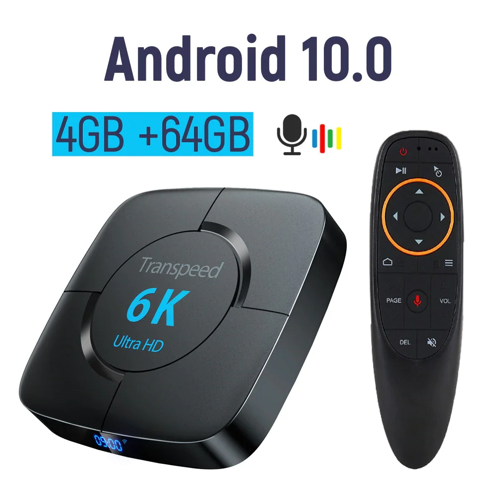 Transpeed Android 10.0 ТВ-приставка голосовой помощник 6K 3D Wifi 2,4G & 58G4GBRAM64G медиаплеер очень быстрая приставка