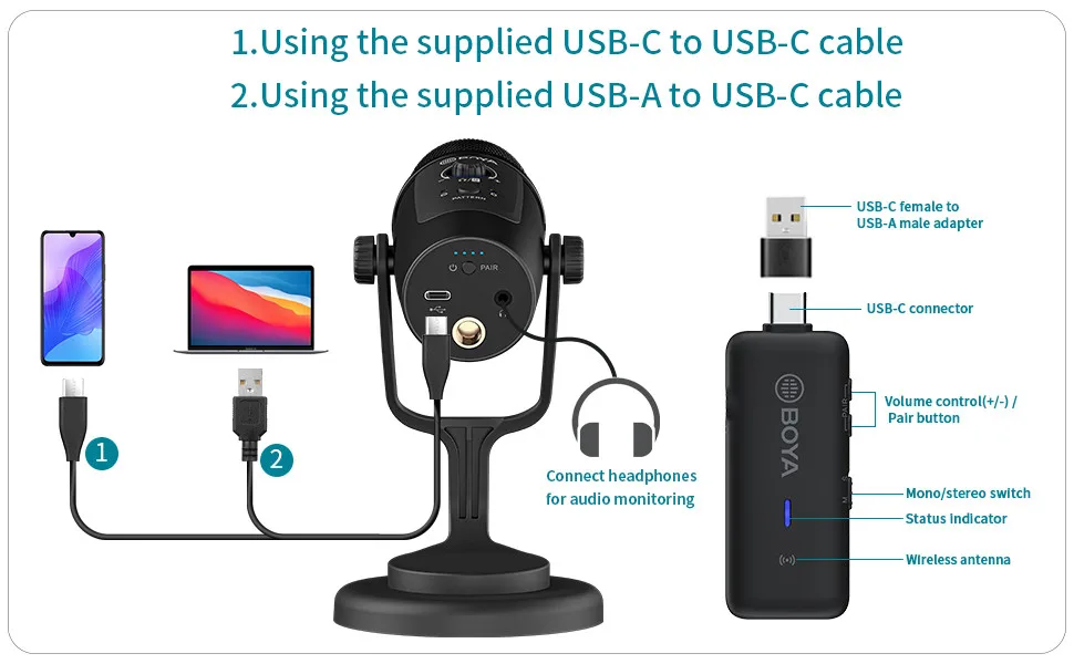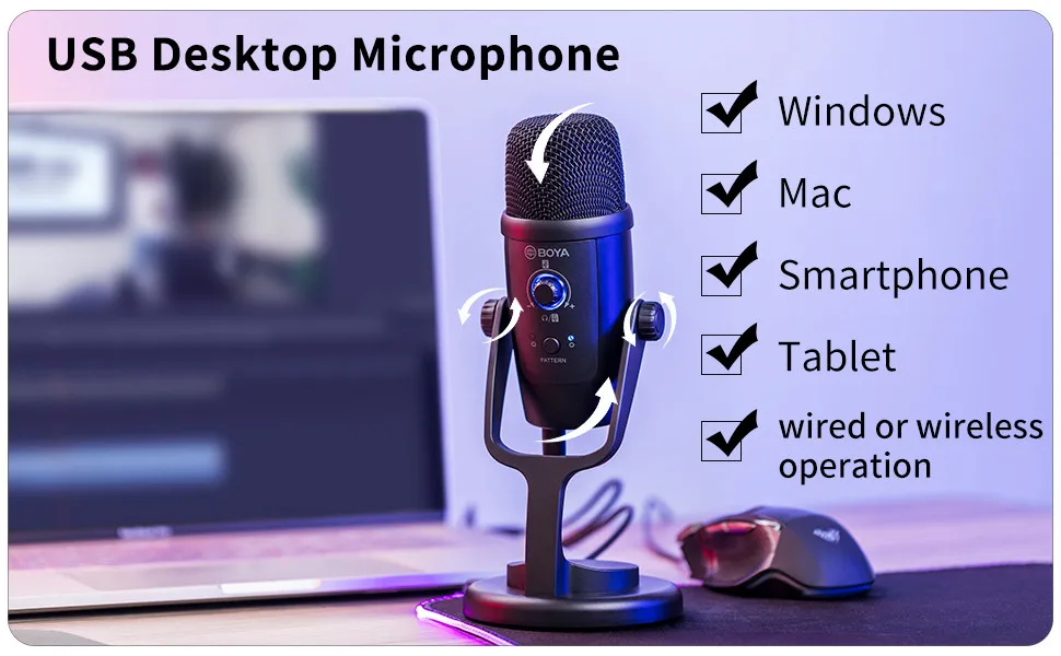 BOYA BY-PM500W-это революционный беспроводной usb-микрофон в отрасли, предлагающий проводную или беспроводную работу для геймеров, Стримеров, подроликов в различных приложениях.