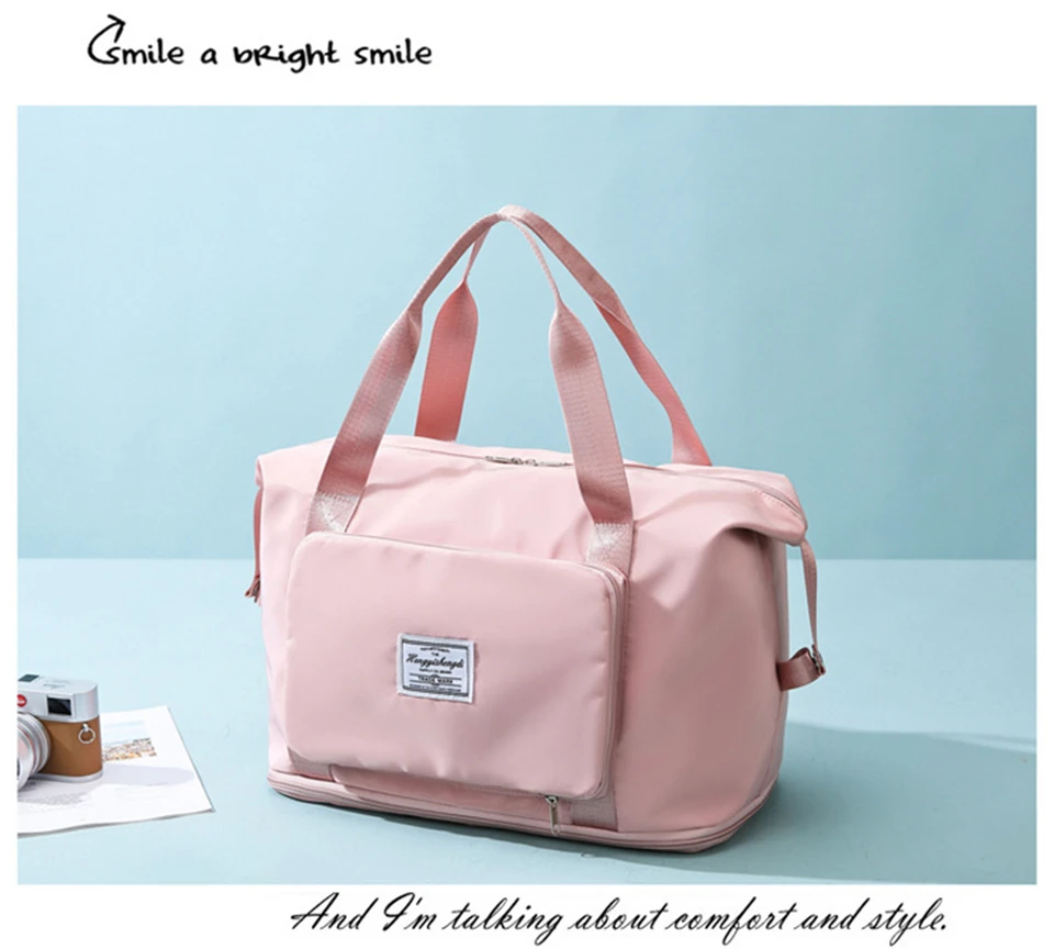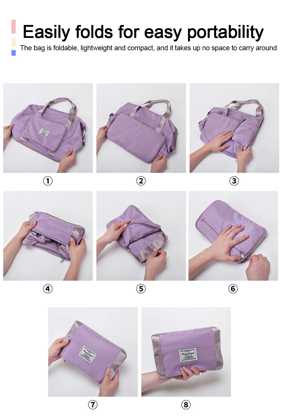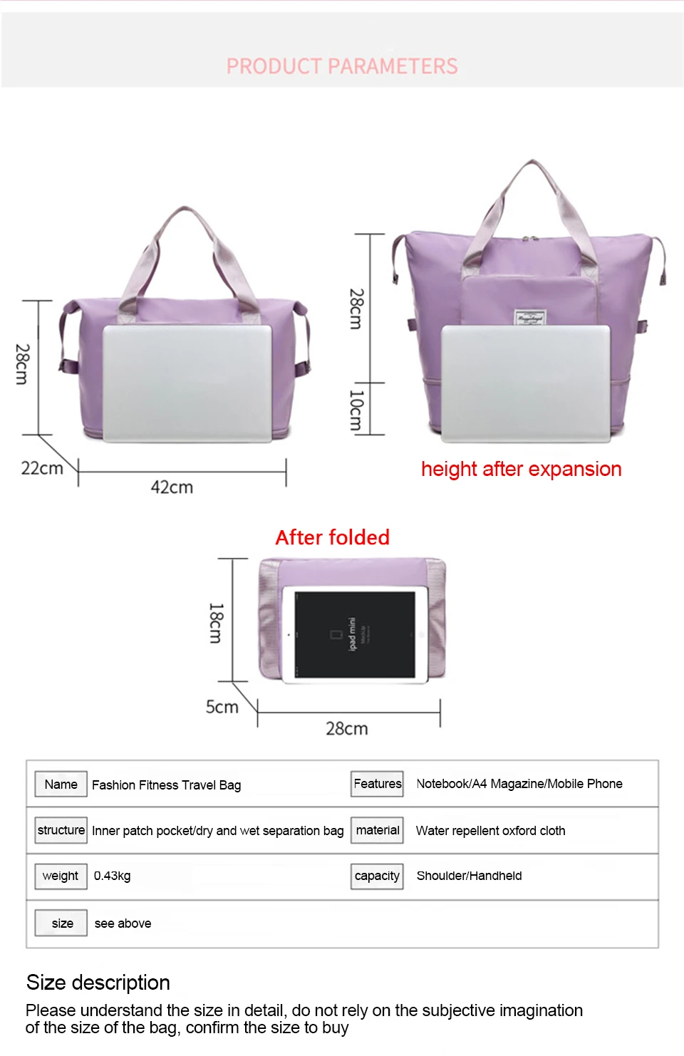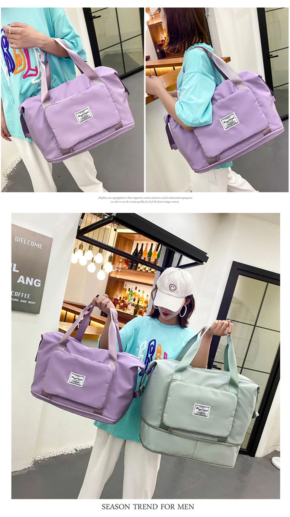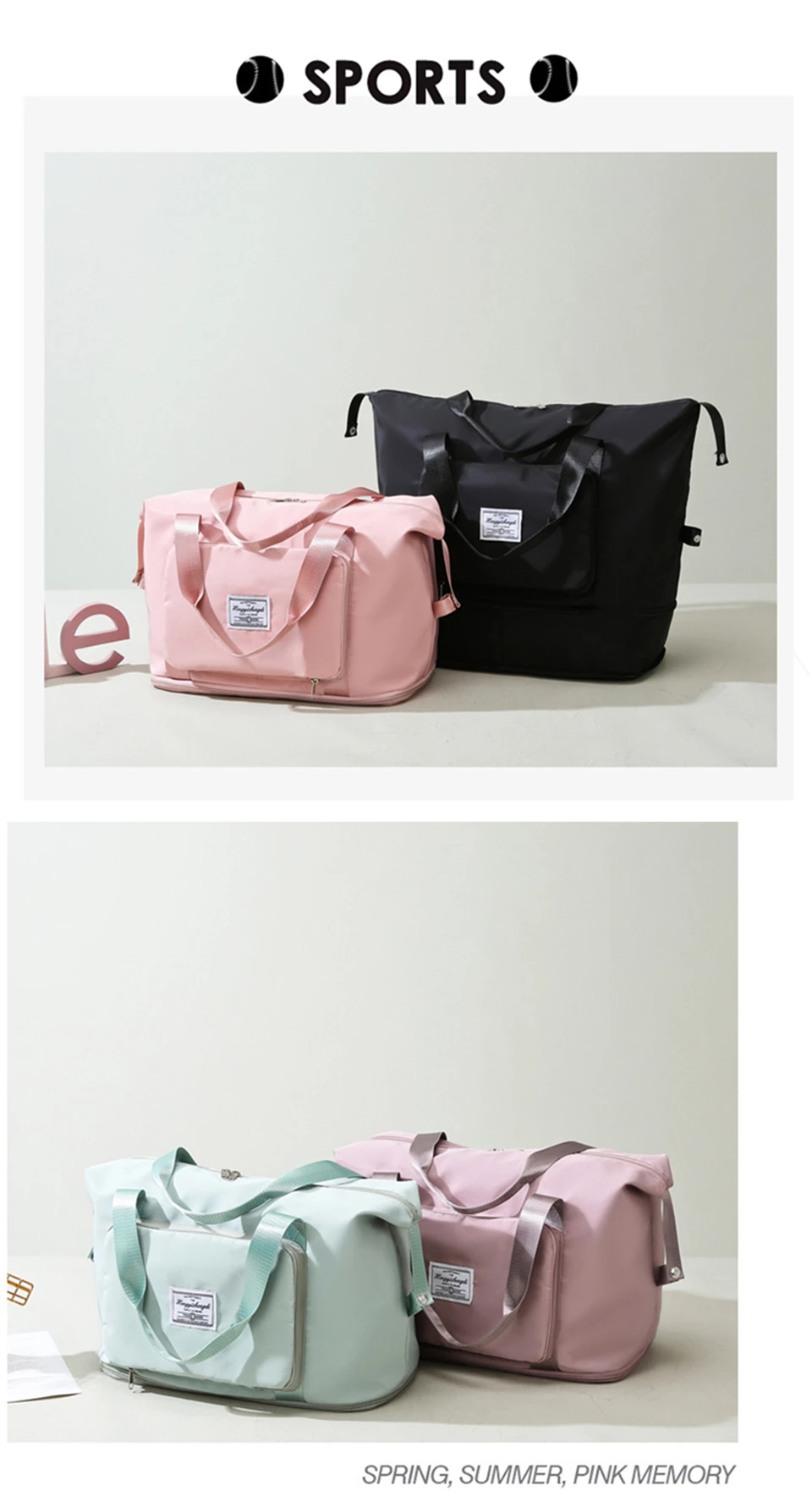 Foldable Large Capacity Women Sports Yoga Gym Bags Folding Travel Lightweight Waterproof Bag Expandable Capacity Training Shoulder Handbag