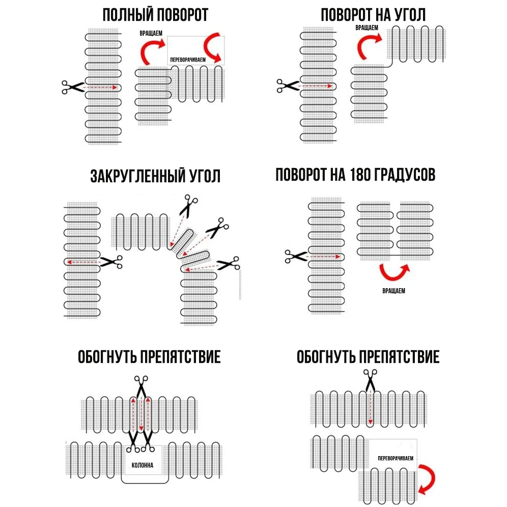 Кабель нагревается благодаря высокому сопротивлению токопроводящих жил, оптимальное потребление мощности достигается за счет рационального подбора длины нагревающего провода, а его фиксация на сетке значительно упрощает монтаж.