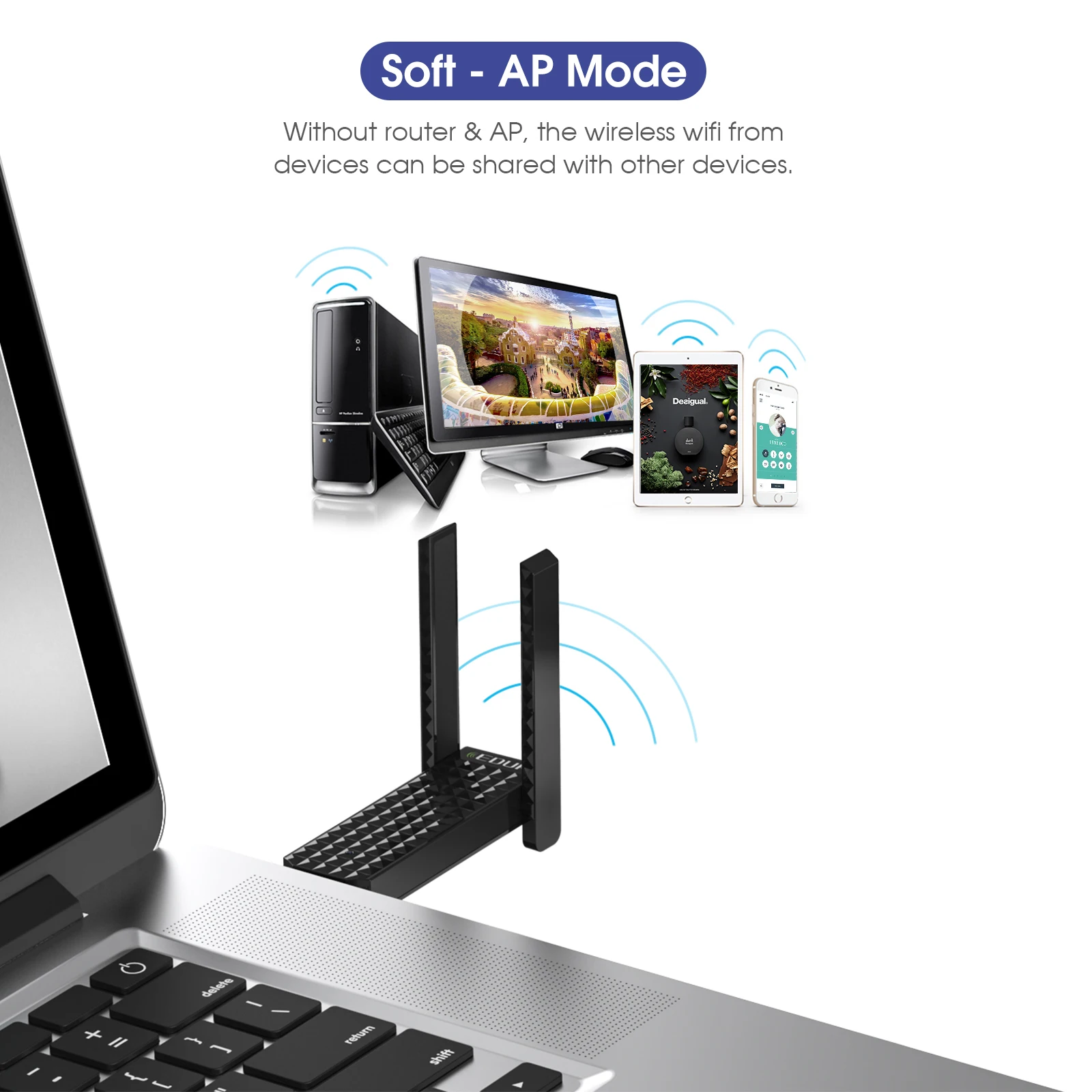 EDUP 600 Мбит/с беспроводная wifi сетевая карта двухдиапазонный usb wifi адаптер для компьютера