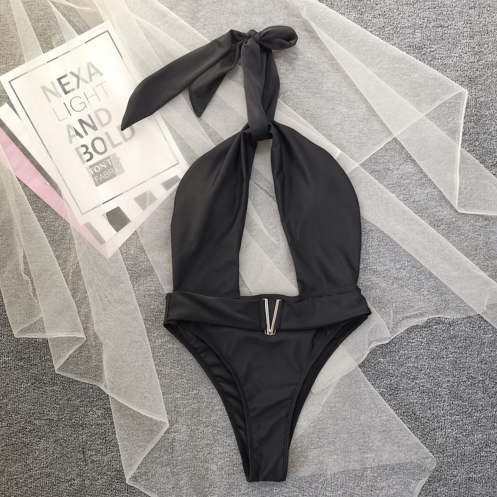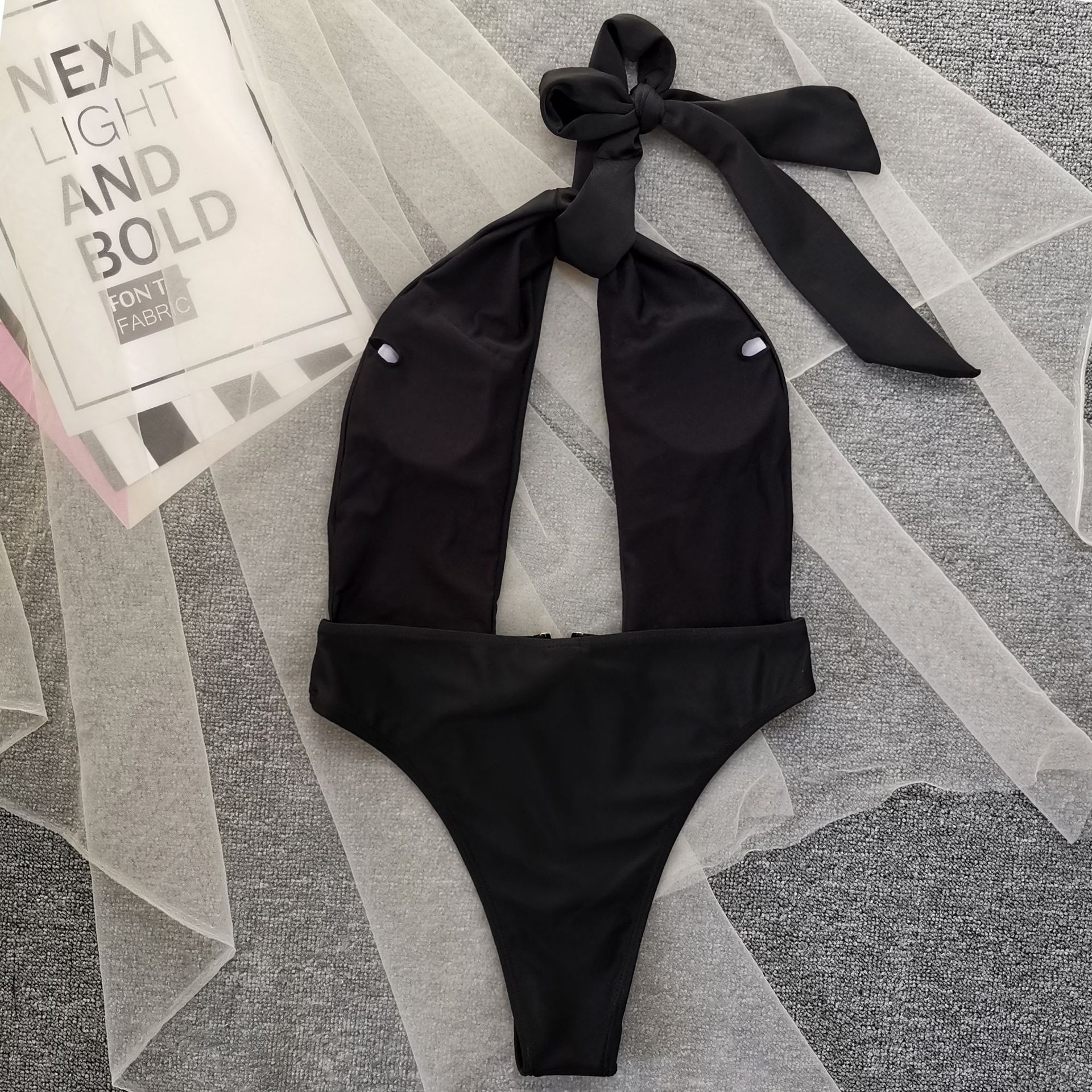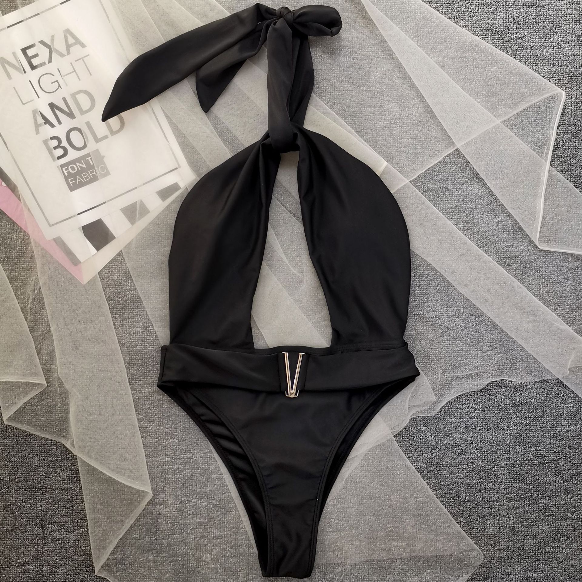 2022 женский пуш-ап с открытой спиной, монокини, бикини, черный купальник, пляжная одежда, женский купальник, сексуальный, с вырезами, бандаж, боди с лямкой на шее