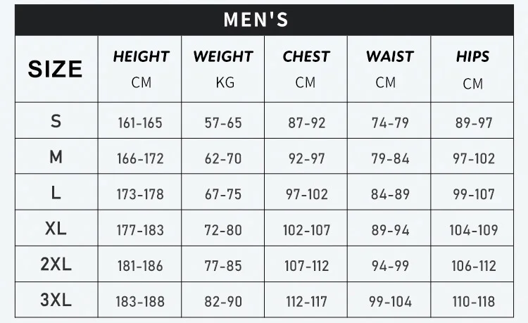 Примечание: размеры соответствуют китайским размерам, они меньше, чем обычно. Перед покупкой ознакомьтесь с приведенной ниже таблицей размеров.