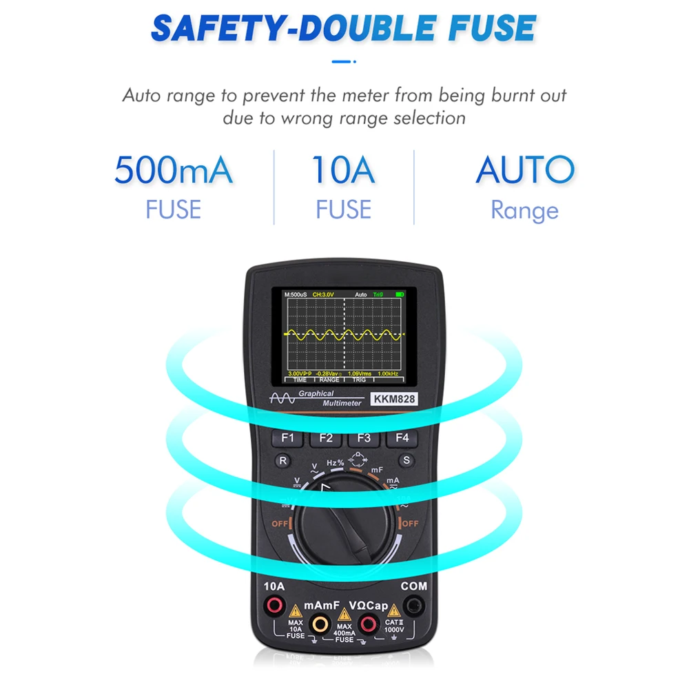 Тройная безопасность: двойная страховая трубка, 500мА/250В, 10А/250В. Входное напряжение больше 24 В, звуковой сигнал один раз. Вход за диапазон, звуковой сигнал.