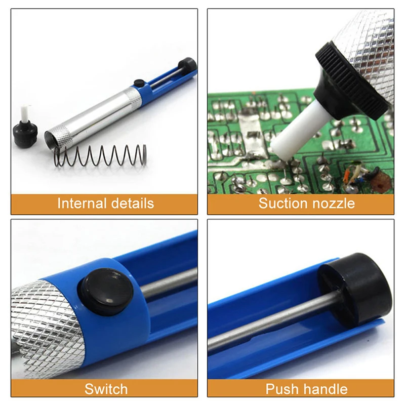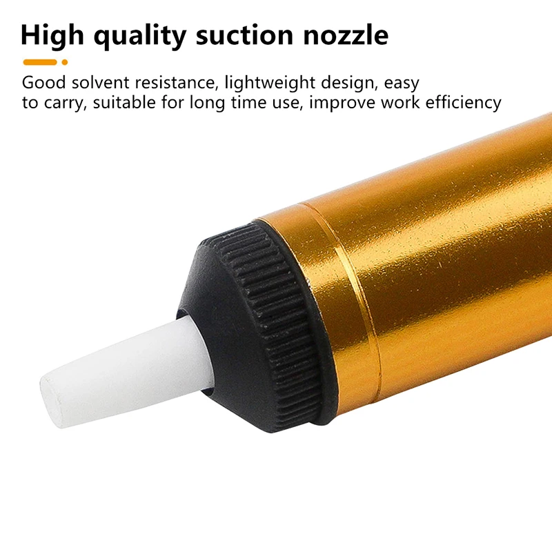 <Широко используется: демонтажный насос используется в электронике и электропромышленности, подходит для штифтов интегральной схемы, ремонта бытовой техники, цифрового ремонта и так далее, эффективный и компактный для удаления остатков олова.