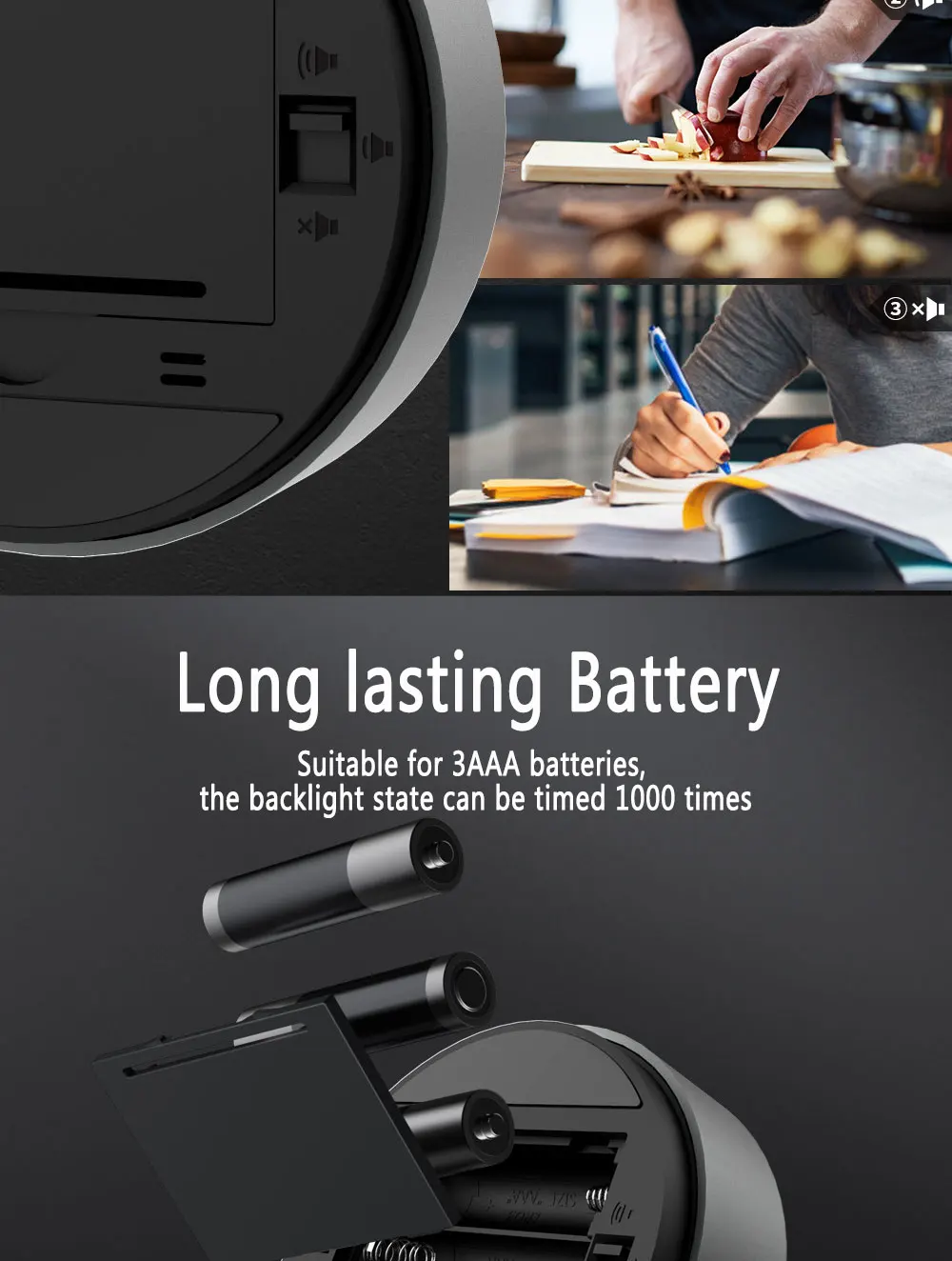 Громкий будильник/отключение звука: 3 уровня будильника от 0 дБ до 90 дБ, бесшумный дизайн идеально подходит для классных комнат, библиотеки и офиса, таймер обратного отсчета напомнит вам с мигающим экраном.