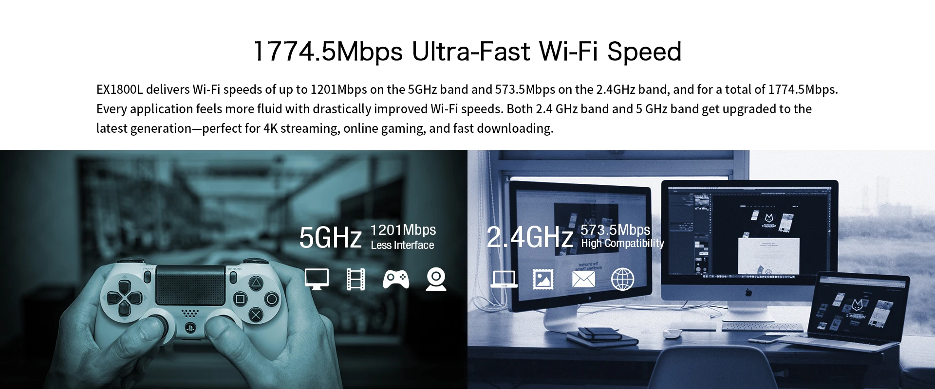 EX1800L, расширитель диапазона AX1800 Wi-Fi 6, встроенный с новейшей технологией Wi-Fi 6, беспроводное подключение к существующему маршрутизатору и увеличение количества сигналов Wi-Fi на протяжении всего вашего дома, позволяет наслаждаться плавным Wi-Fi 6 сетевым опытом во всем мире с большой скоростью, емкостью и покрытием.