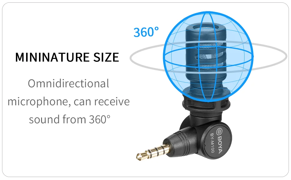 BOYA BY-M110 является mininature размер, всенаправленный 3,5 мм TRRS для смартфона, ноутбука, планшета и др.