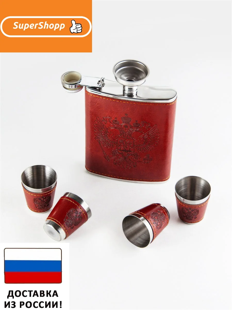 подарок на любой праздник. В комплект идет фляжка 250 мл., рюмки 4 шт. и