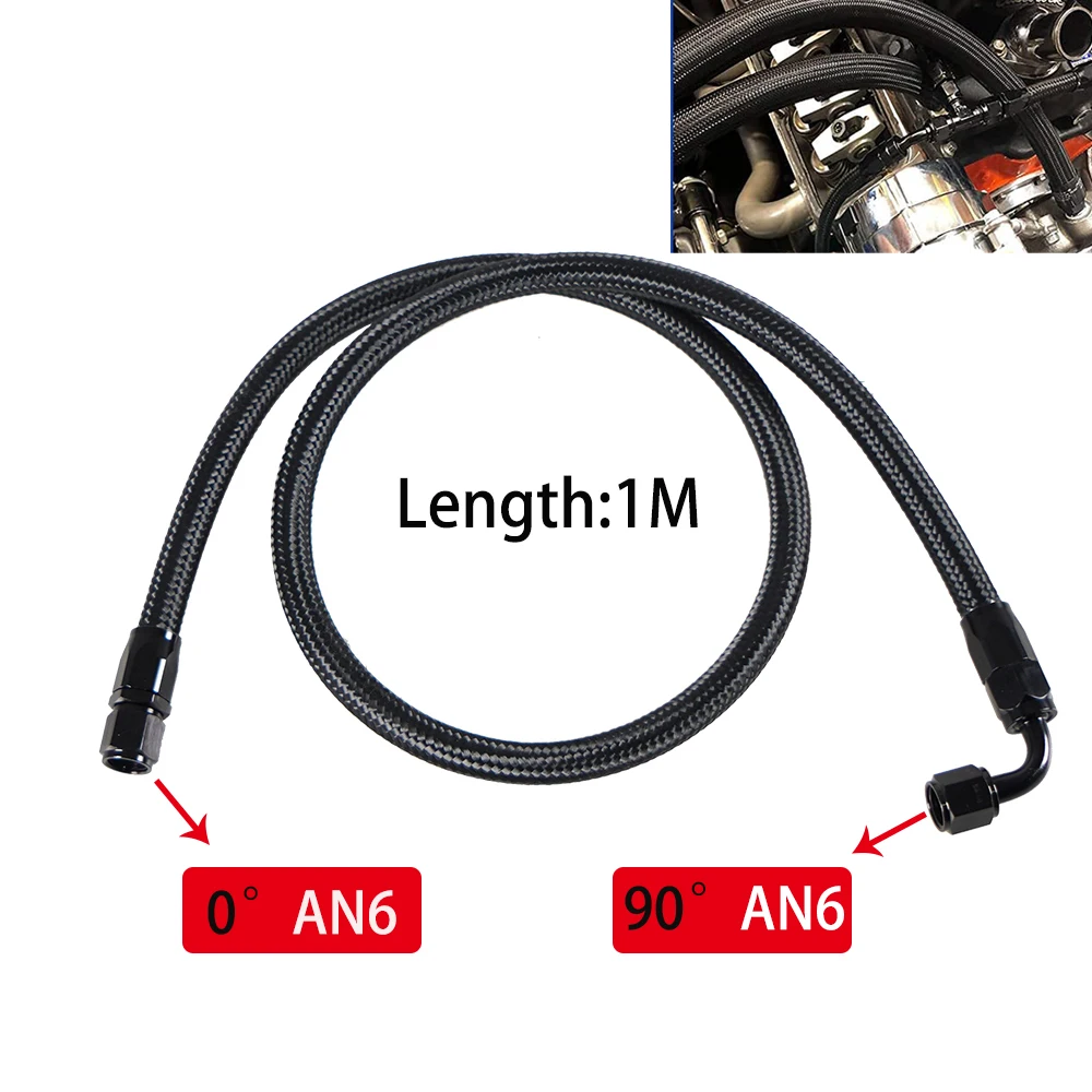 1 м AN6 6AN черные плетеные фитинги для нефтяного топлива конец шланга 0 + 90 градусов масляный адаптер Комплект Масляный топливный шланг линия