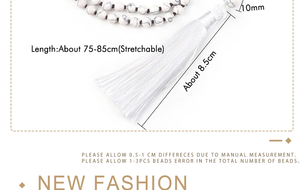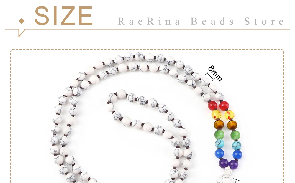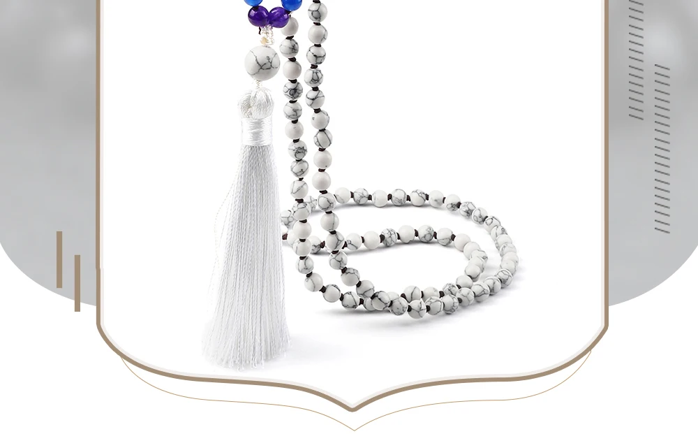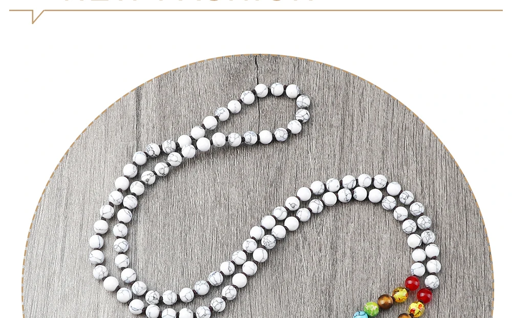 Ручной работы натуральный камень говлит 108 бусы ожерелья рейки 7 Чакра Женская мода Йога Медитация ожерелье с кисточкой кулон Mala ювелирные изделия подарок