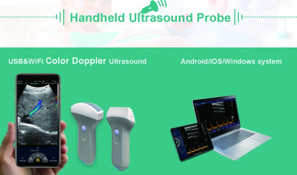 Ручной ультразвуковой зондВы можете сканировать кого-либо в любое время в любом удобном месте, например, в клинике, больничном отделении, отделении скорой помощи или операционном театре.