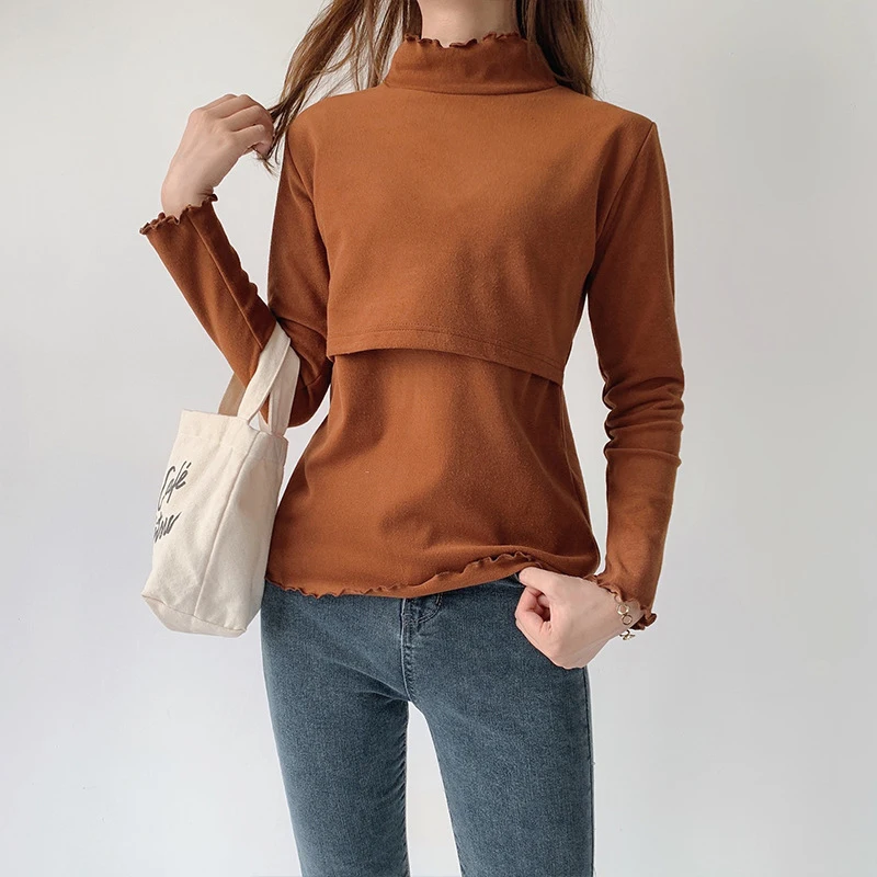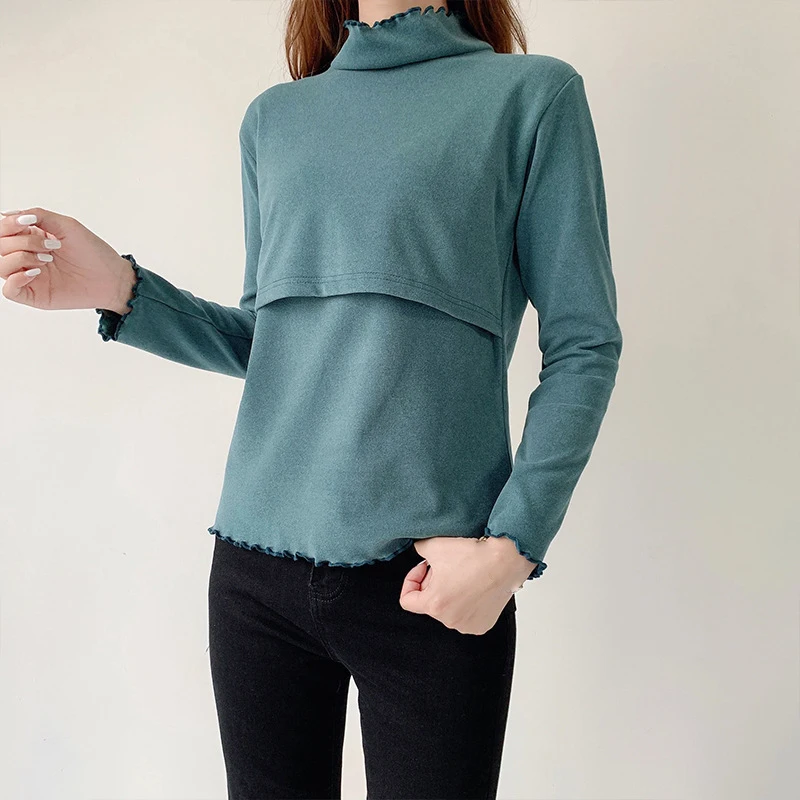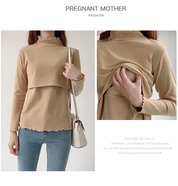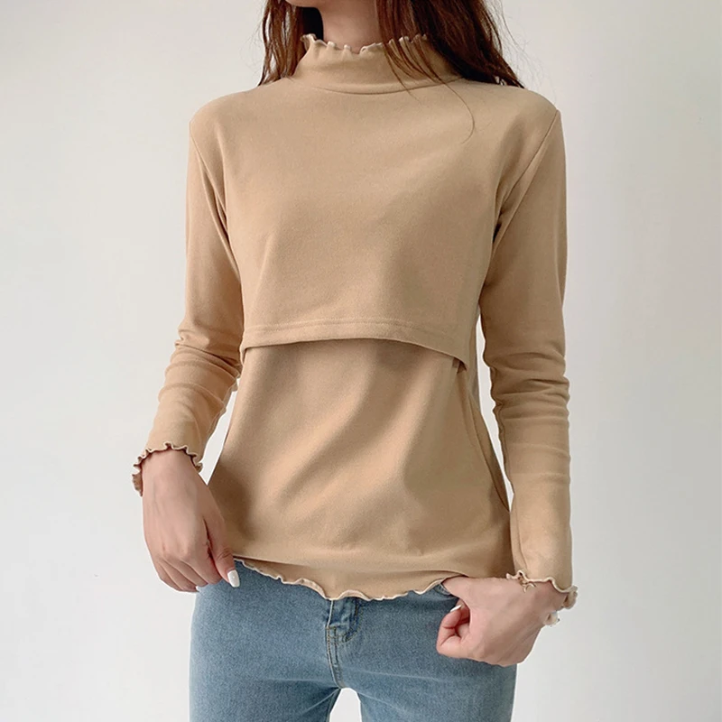 Универсальные топы с высоким воротом для грудного вскармливания, домашняя одежда для женщин, однотонные топы с длинными рукавами для беременных