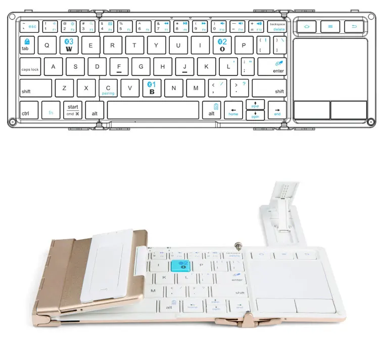 1. Мини bluetooth wirelesskeyboare с Hiden стендами для удержания и поддержки вашего устройства, может использовать ваши планшеты и смартфоны под идеальным углом обзора.