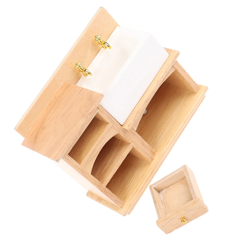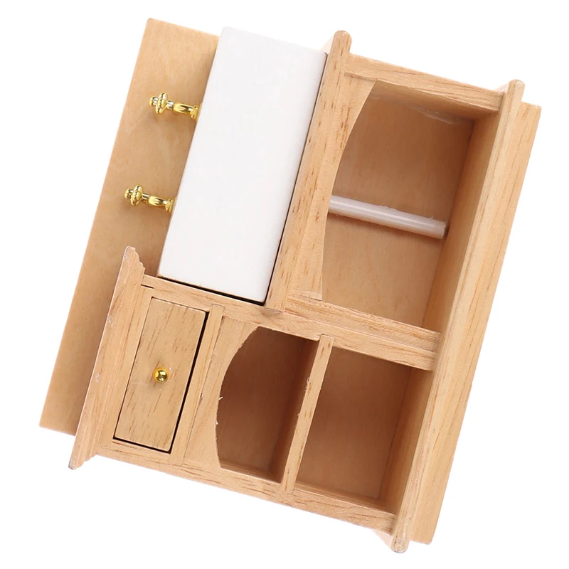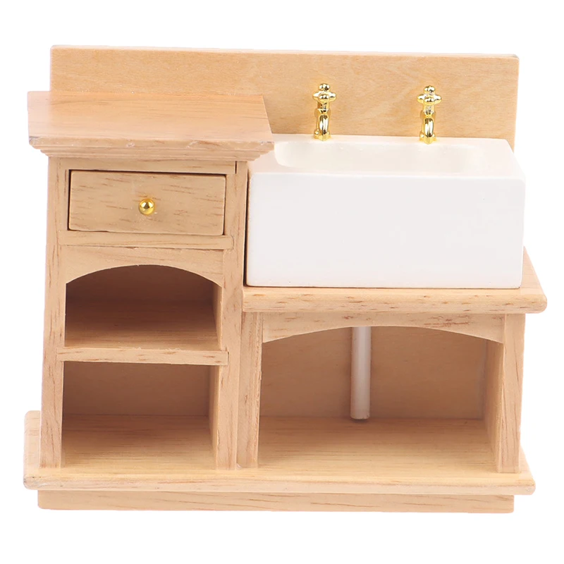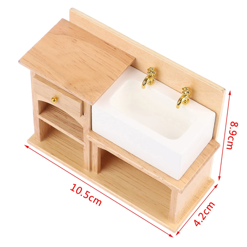 - Dollhouse Miniature Furniture Wash Basin Sink Cabinet for Bathroom/Kitchen Decoration.