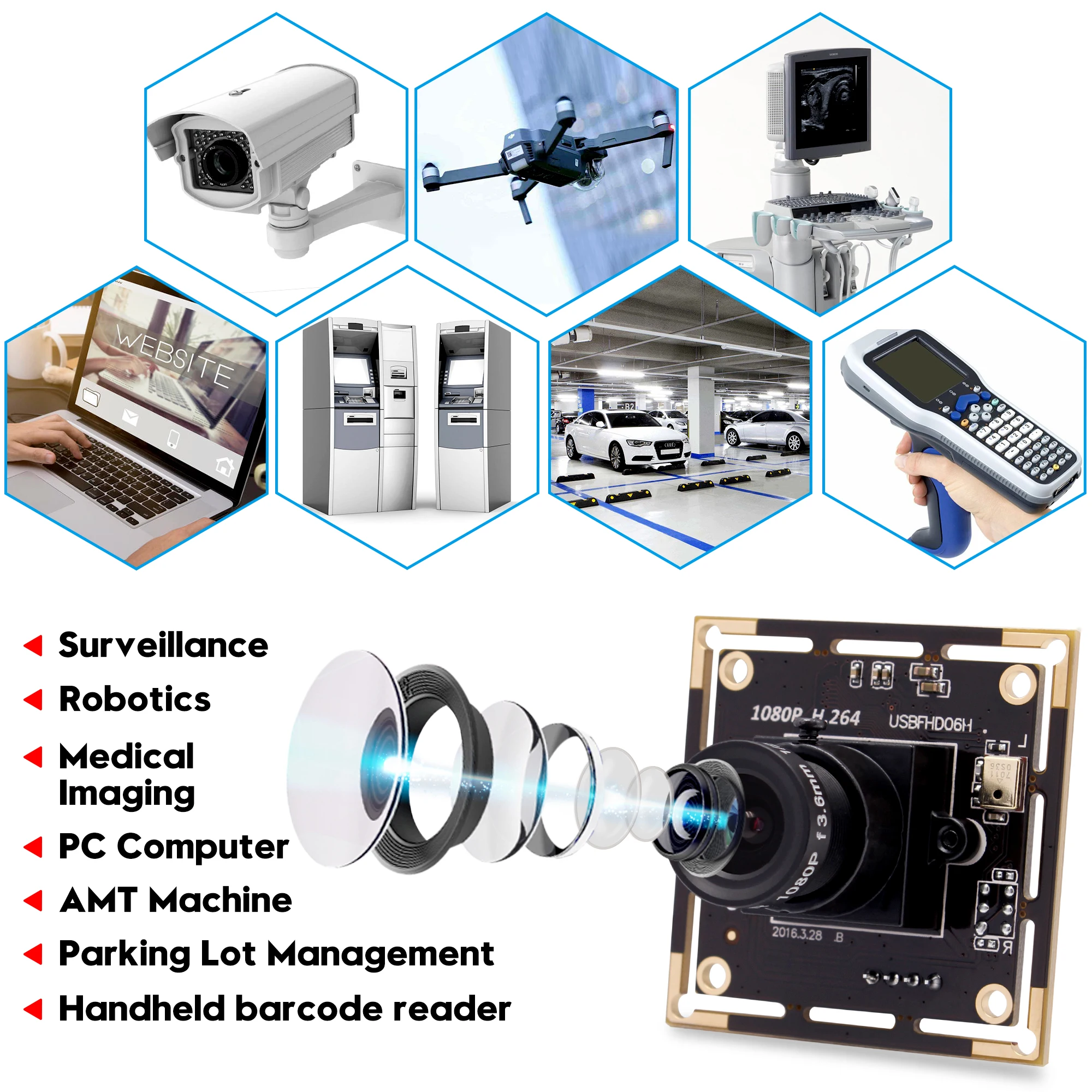 HD 1080P USB CMOS плата модуль камеры идеально подходит для многих приложений, таких как системы безопасности, портативные видео системы, Видео телефоны, промышленный машинный мониторинг и игрушки.