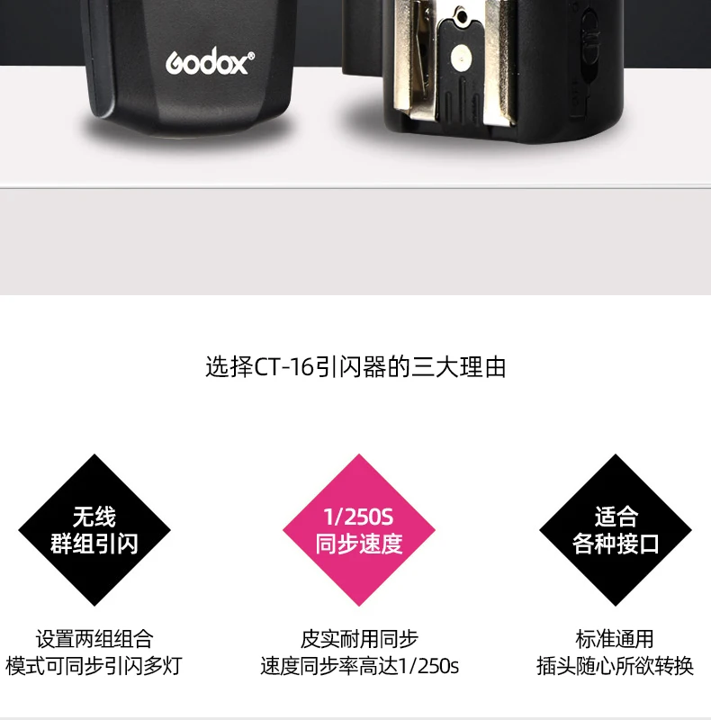 Модель: CT-16Канал: 16 каналовЧастота передачи: 433 МГцПередатчик Мощность: 12V 23A литиевая батарея (не входит в комплект)Приемник Мощность: 2x1,5 V элемент питания AAА (в комплект не входит)Наружное Рабочее расстояние: макс. 30 м/90 футов (открытая площадь, без недомогания)Расстояние работы в помещении: макс. 25 м/75 футовСинхронная скорость: макс. 1/250 секРазмер передатчика: 60x42x30ммРазмер приемника: 90x50x32ммЦвет: черныйМатериал: металл + пластикУправлениеКак использовать:Вставьте гнездо для горячего башмака передатчика в гнездо для горячего башмака камеры, Подключите вспышку к приемнику и включите приемник. Убедитесь, что переключатель каналов как передатчика, так и приемника на одном канале. Нажмите кнопку тестирования на передатчике, чтобы проверить перед съемкой.Если у вашей камеры Нет гнезда для подключения передатчика, вы можете подключить передатчик к камере с помощью кабеля синхронизации ПК. (Требуется только старая камера).С помощью этого триггера вы можете запускать как flashgun, так и studio lights. Если вы используете ресивер на большом студийном стробоскопическом фонарике или раме переменного тока, вы можете просто подключите приемник к студийный стробоскоп фонарик с 3,5 мм или 6,35 мм разъем для синхронизации ПК (не прилагаются).Посылка со списком CT-16Передатчик 1 xCT-16Приемник CT-16-1 шт.1 x кабель синхронизацииАдаптер для преобразования-1 шт.1 x Руководство пользователя