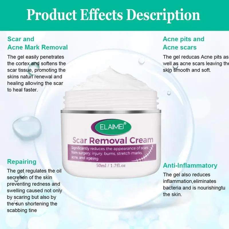 О продукте: сочетание мощных натуральных растительных экстрактов и масел, которые эффективно удаляют шрамы, способствует регенерации клеток и восстанавливает естественный внешний вид кожи. Все типы кожи имеют передовую формулу удаления шрамов, которая может удалить старые и новые шрамы. Очень подходит для удаления рубцов, порезов, следов беременности, акне, повреждений кожи, ожогов, штаммов, покраснения и отек лица, ног, рук и т. д. Возьмите соответствующее количество этого продукта и равномерно нанесите его на нужные части, мягко массируйте до впитывания. Два раза в день, утром и ночью, новые шрамы используются в течение 2-3 месяцев, старые шрамы используются в течение 3-6 месяцев.