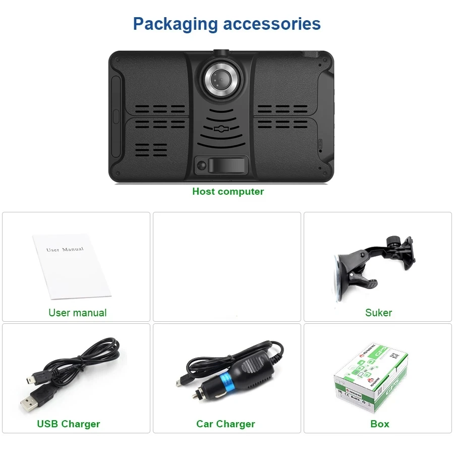 7 дюймов емкостный сенсорный экран 800*480 TFT большой экран, играть в игры, смотреть видео, ясно видеть дорогу и 5 точек емкостный сенсорный экран, четкий, чувствительный и может реагировать на незначительное касание.