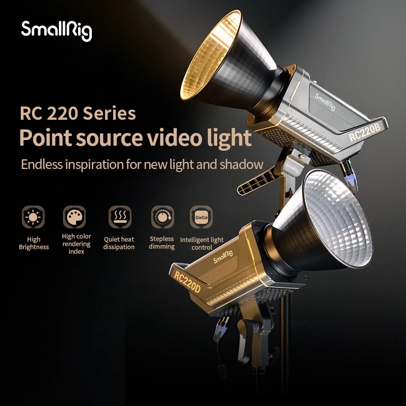 RC 120D, светодиодный светильник первого поколения с точечным источником SmallRig. Благодаря новейшей технологии COB и передовому промышленному дизайну SmallRig RC120D уникален. В комплекте с высоким уровнем отражения hyper отражатель на расстоянии 1 метр (3,3 ФТ.), Центр Освещенность достигает 62600 lux, далеко за один и тот же уровень продукты на рынке. Высокая цветопередача, CRI 95 +, TLCI 96 +. Стандартное Крепление Bowens позволяет ему Совместимо с большим количеством аксессуаров под светильник. 9 встроенных эффектов на светильник «Paparazzi, фейерверк, светильник ning, лампа неисправности, телевизор, дыхание, вспышка, вечерние, flame'' и яркость может быть удаленно управляется SmallGoGo.