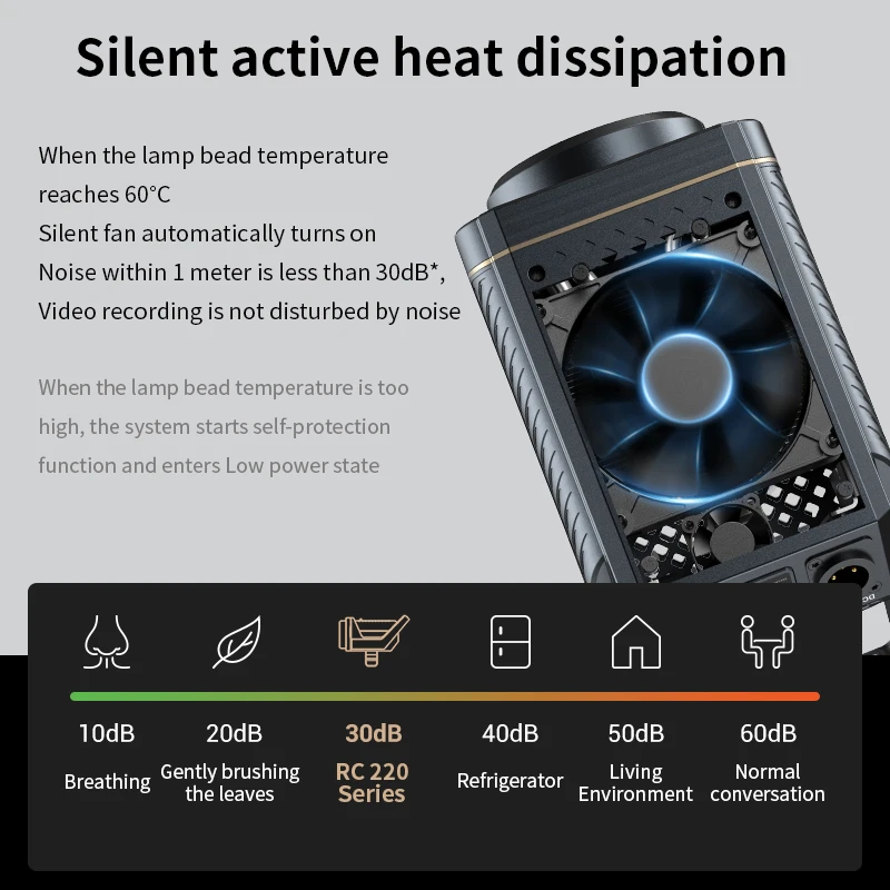 6. Когда температура корпуса лампы превышает 60 ℃ (140 °F), включена функция активного рассеивания тепла.