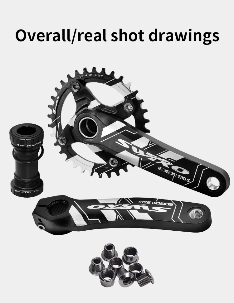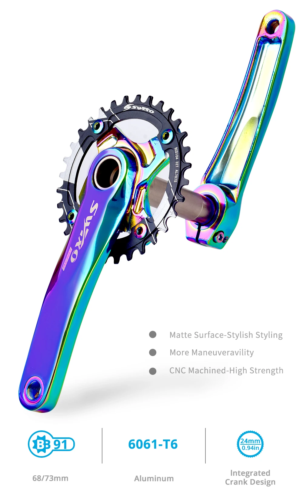 【🤩Ultra-light Material】Crank and Chainring made of high strength aluminum alloy, light weight, stylish, flashy styling, high axial strength and compatibility.