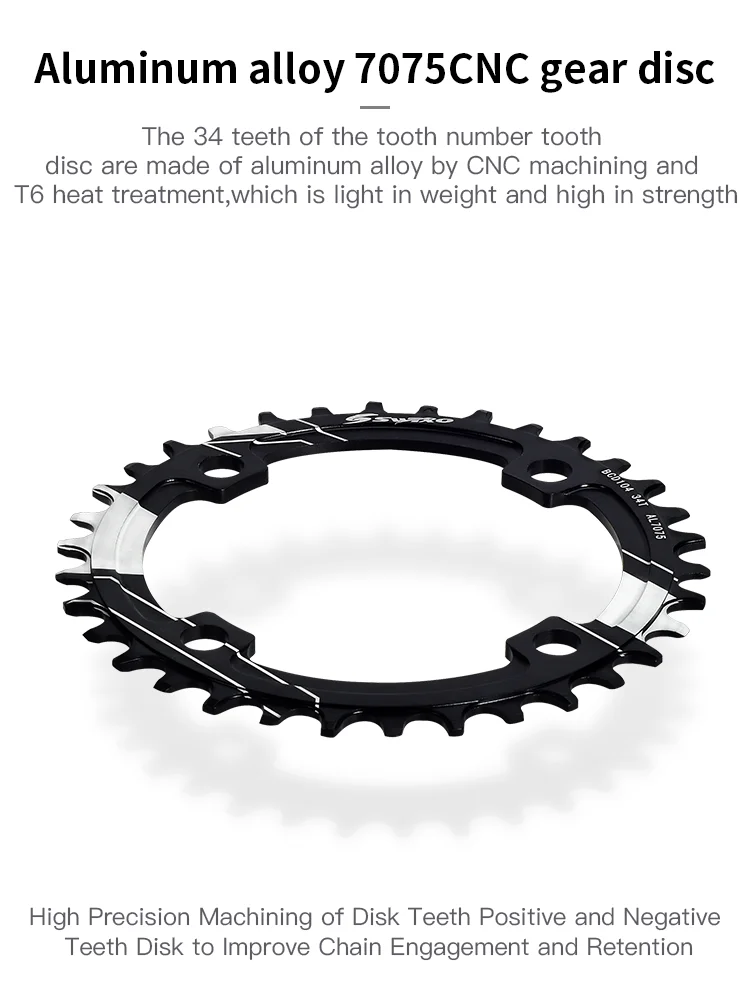 【👍DECKAS Chainring】Single speed narrow wide 104mmBCD, 32/34/36/38T, Round, Black, red, blue, gold