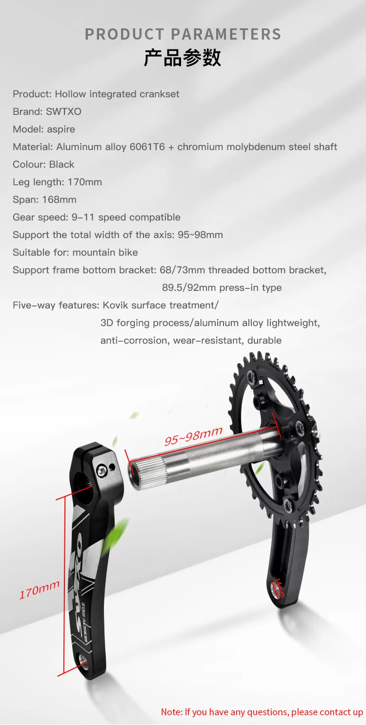 【👍SWTXO Crank Size】BCD: 104mm/4.09in. Crank Arm length: 170mm/6.69in, Crank related holes distance: 74mm/2.91in.