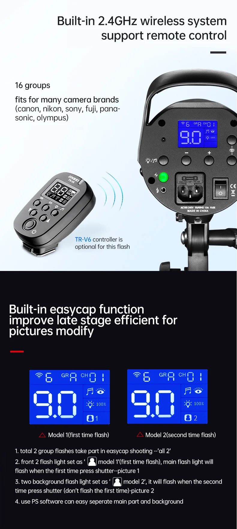 Режим синхронизации: Nor mode(Canon/Sony/Fuji<1/250s, Nikon:1/320s)