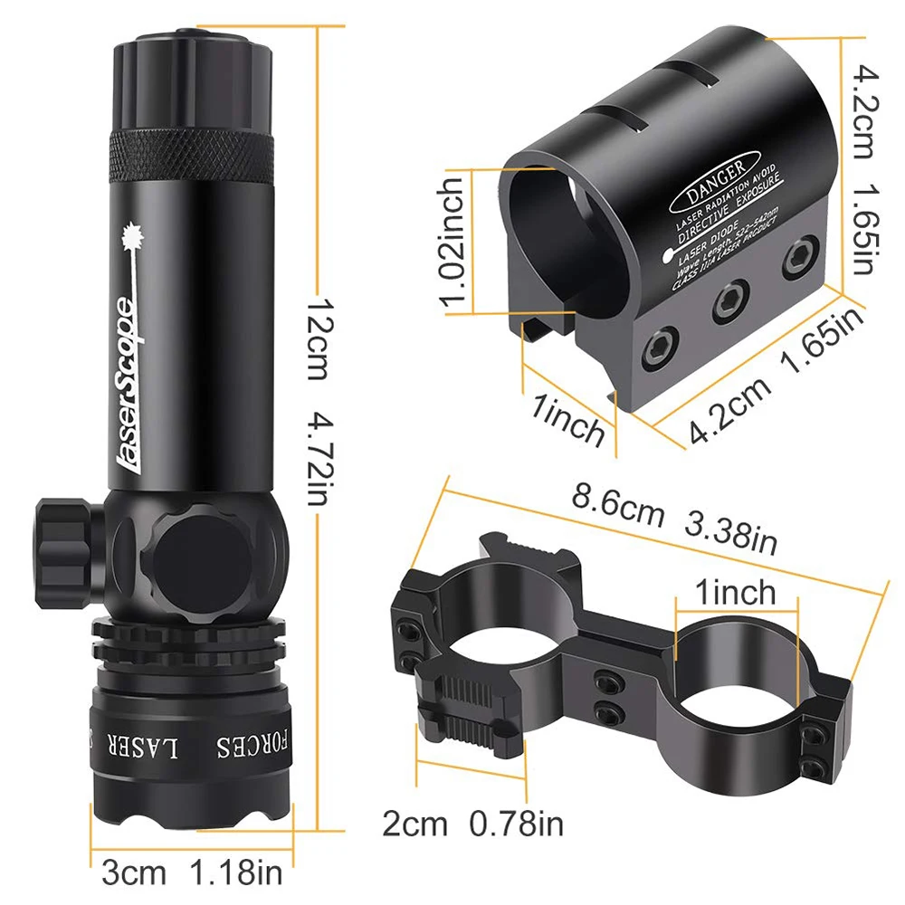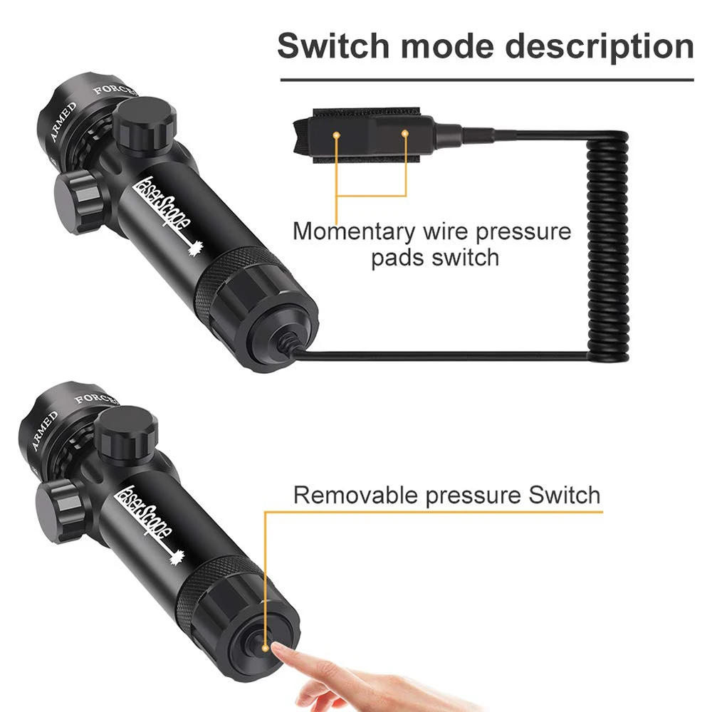 1. 【Удобство и совместимость 】встроенный с кнопочным выключателем и мгновенным проводным переключателем давления. Этот лазерный прицел имеет двойную систему крепления, он может быть установлен на любом огне с 20 мм Пикатинни или Вивера. И он также может быть установлен на прицел винтовки с 1 ''кольцевым адаптером.