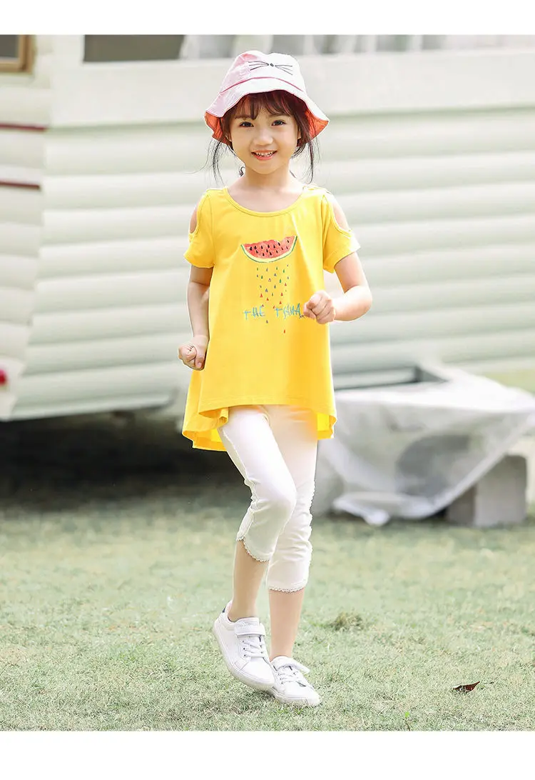 🍒🍒🍒2 предмета, летние детские укороченные штаны для девочек, однотонные колготки, леггинсы для девочек, леггинсы для маленьких девочек-подростков, одежда для детей 6, 8, 10 лет