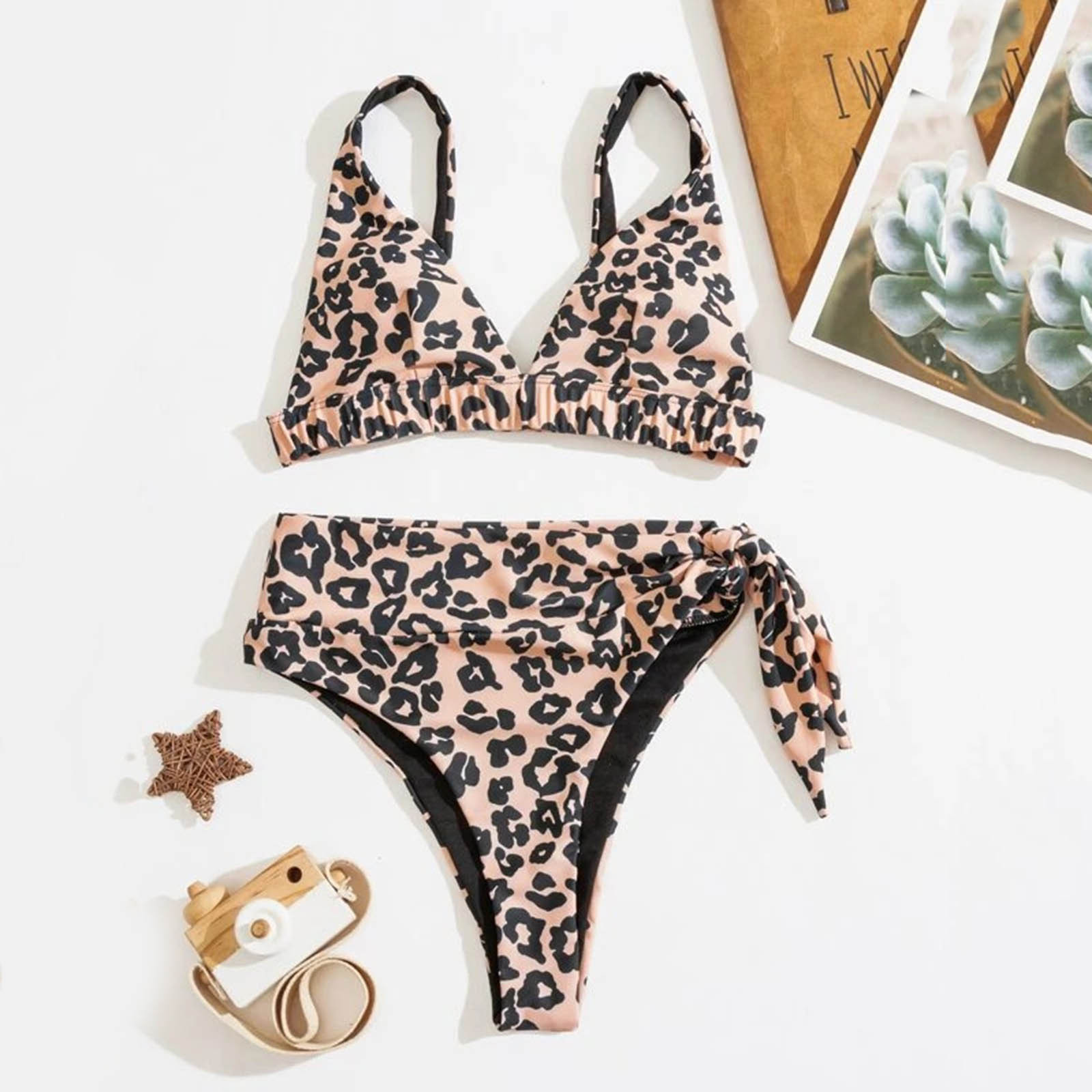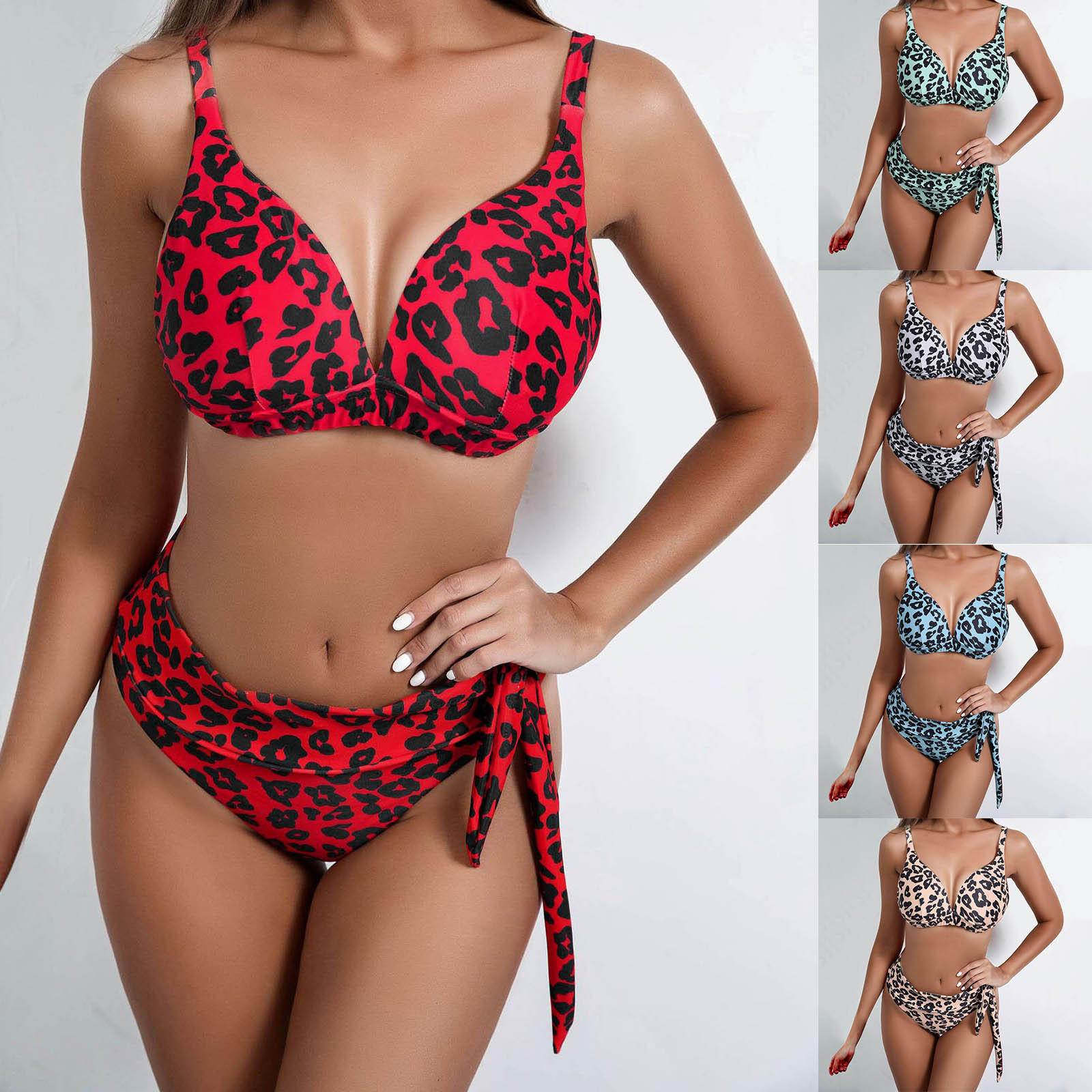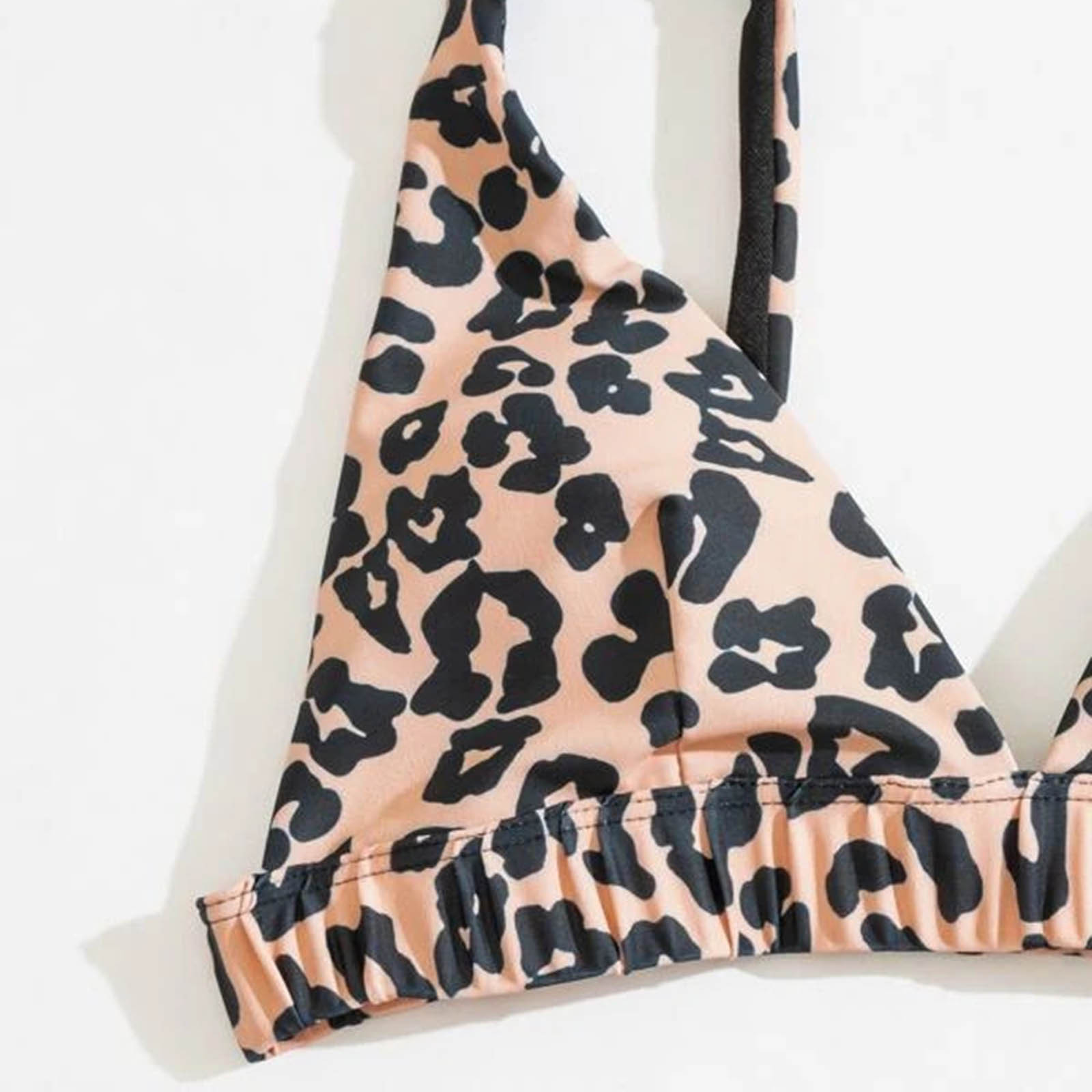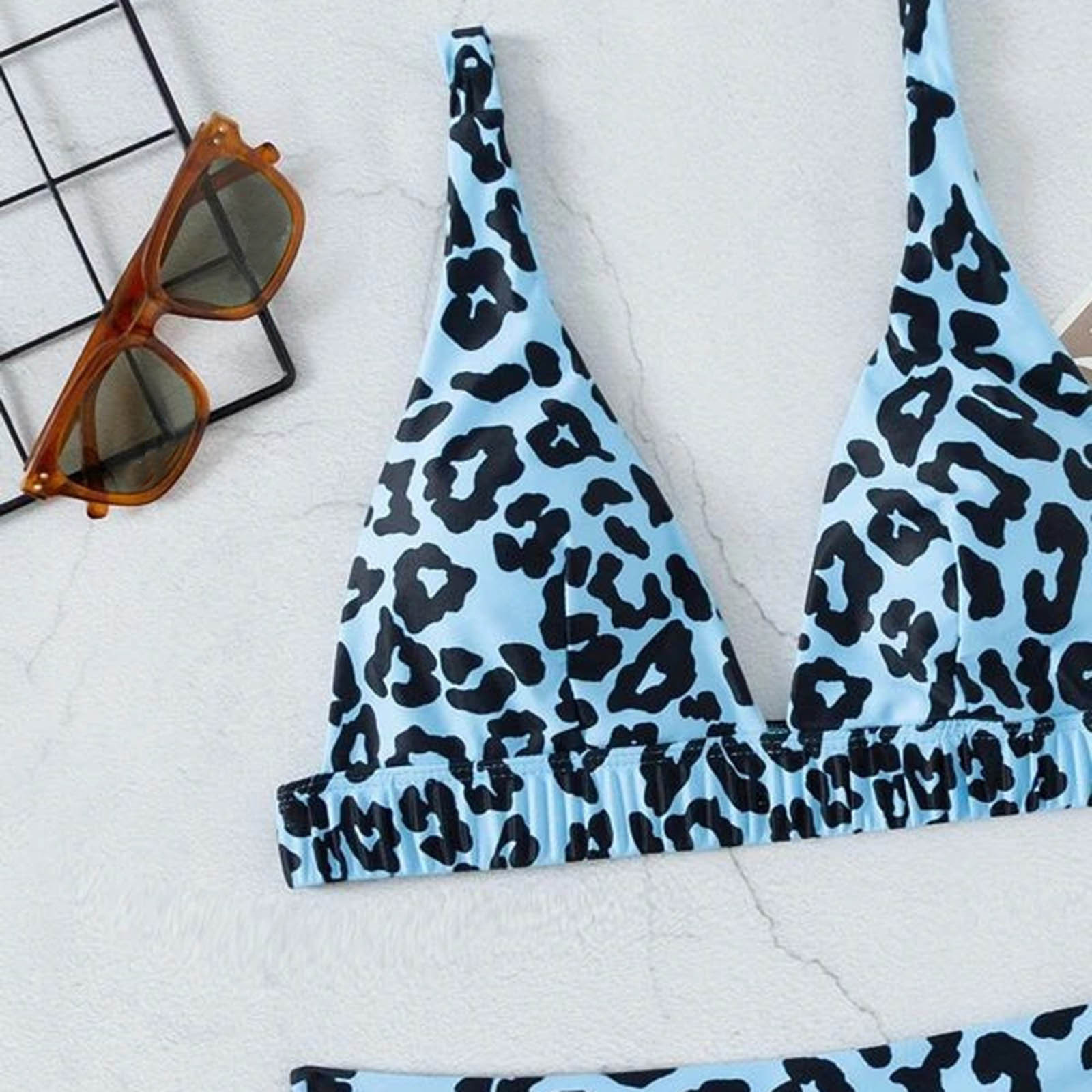 Женский модный летний сексуальный купальник-бикини из двух частей с леопардовым принтом
