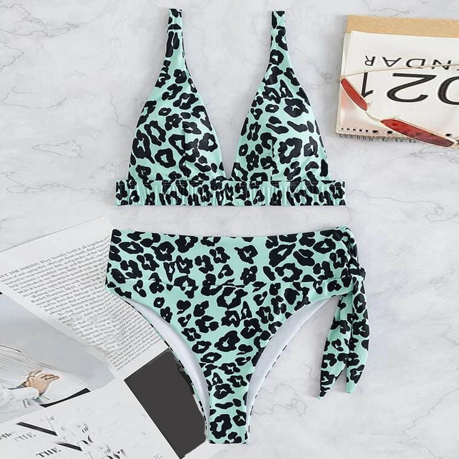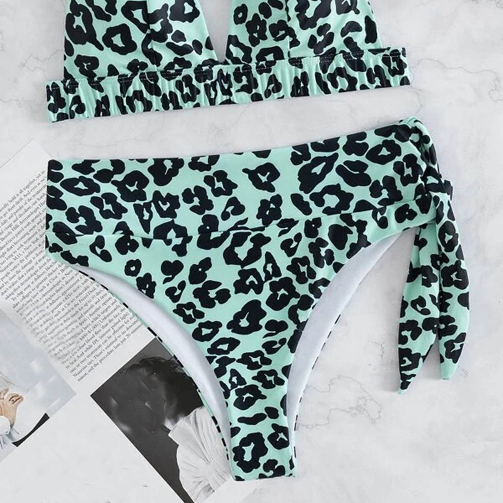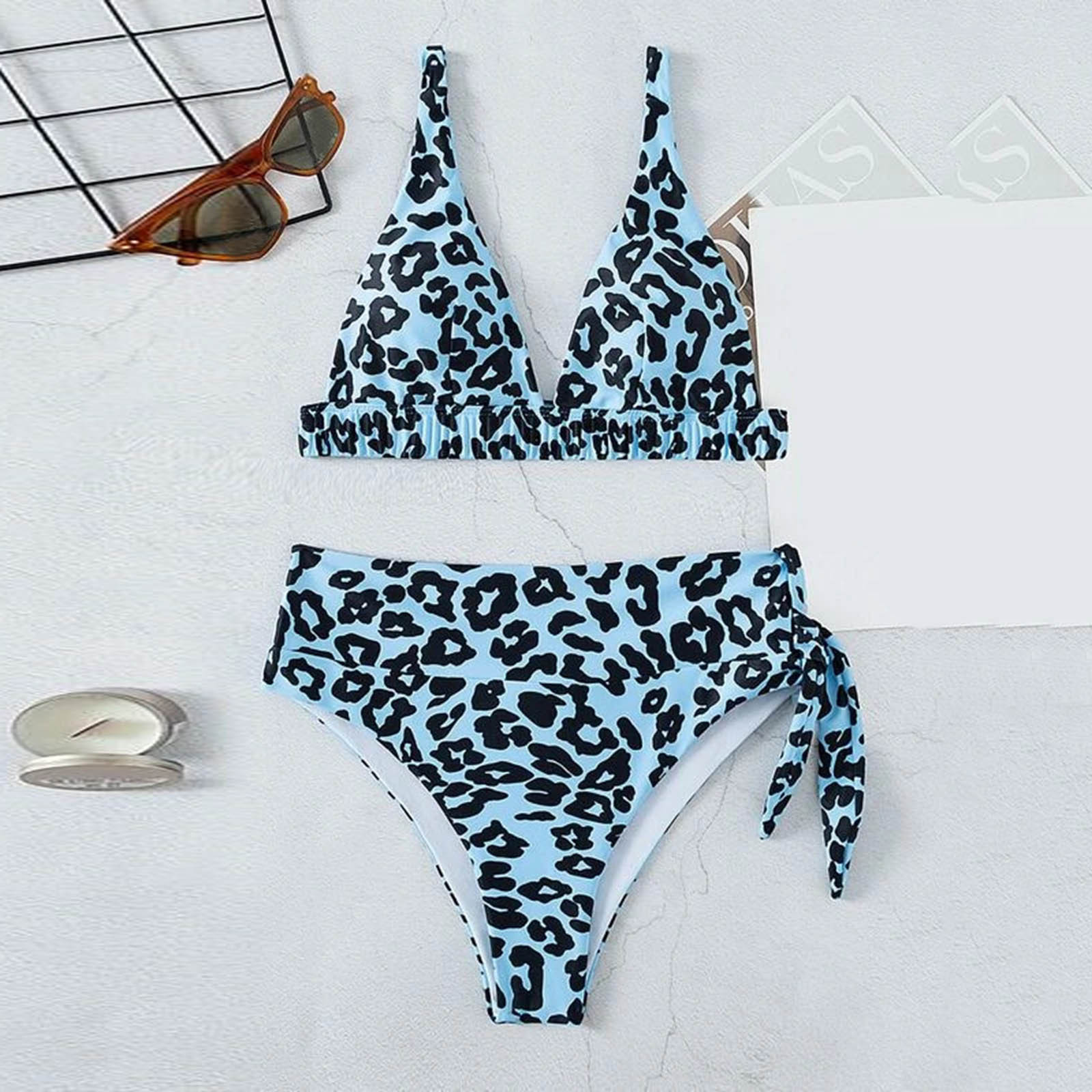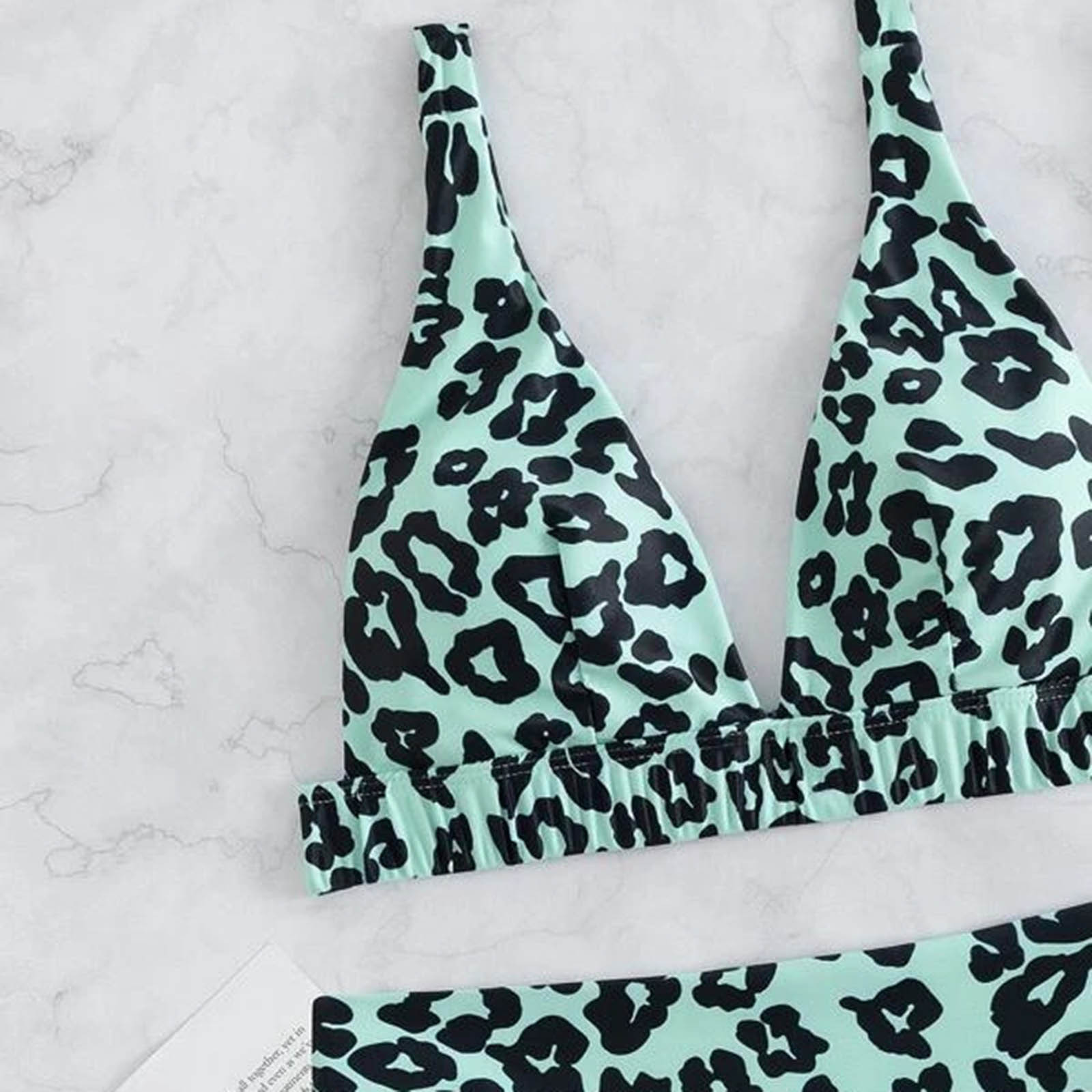 Женский модный летний сексуальный купальник-бикини из двух частей с леопардовым принтом