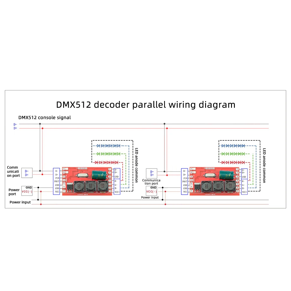 Каждый модуль соединен параллельно, и усилитель должен быть добавлен каждые 32 модуля (это число является теоретическим значением, фактическое значение должно быть проверено на инженерное поле), И каждый модуль устанавливается с уникальным адресом (может быть написан кодовым писателем);