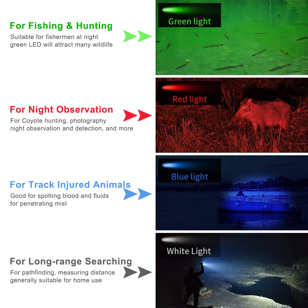 Ночные охотничьи огни для отслеживания, пятнистости и сбора свиней, койотов, варминтов и хищников. Различные животные чувствительны к различным длинам волны светильник.