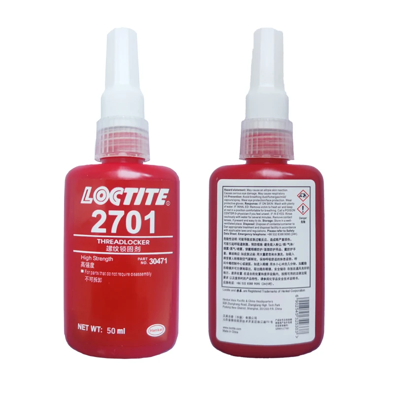 Loctite 2701 Threadlocker _ (высокая прочность/Низкая вязкость/маслостойкость) Этот продукт подходит для блокировки и герметизации резьбовых крепежей. Лечит при изоляции от воздуха между двумя плотно прилегающими металлическими поверхностями и сопротивляется ослаблению и утечке из-за ударов и вибрации. Основная особенность-маслостойкость